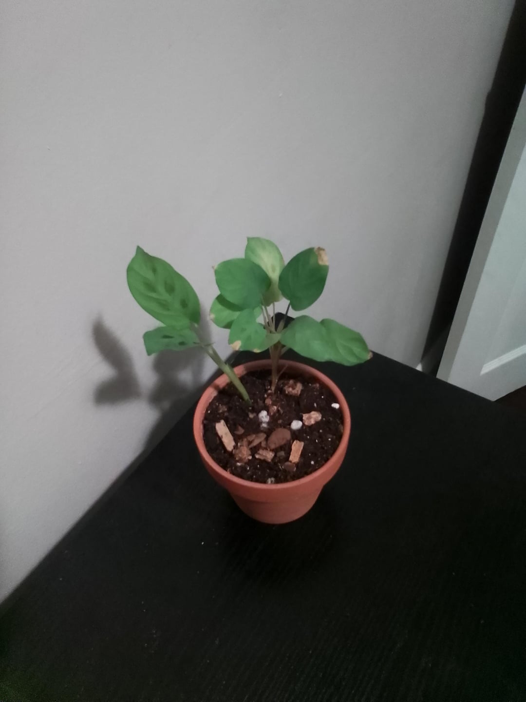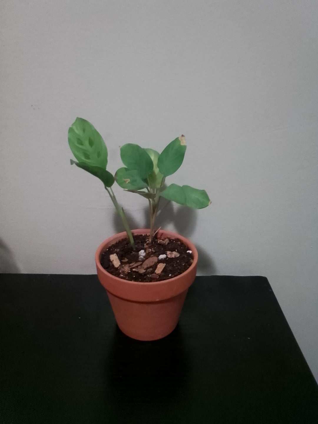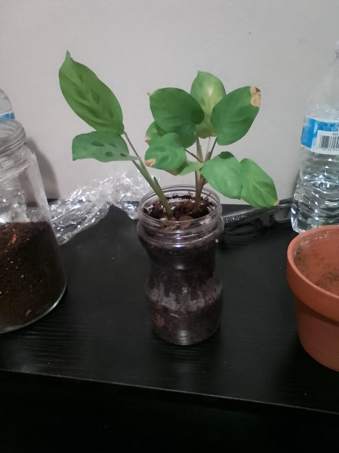 Kann mir bitte jemand helfen, mich zu beruhigen und mir mitzuteilen, ob dies ein guter Umtopf für meine Gebetspflanze Hasenfuß-Maranta ist? Ich hatte sie zuerst in einem kleinen Plastikbecher, wahrscheinlich einem 5-Unzen-Becher, einfach einem normalen Badezimmer "Spülen Sie Ihren Mund aus" Tasse. Und dann hatte ich vorhin die gute Idee, sie umzutopfen und in einen leeren Folgers-Plastikbehälter zu stecken, damit ihre Wurzeln mehr Platz hatten. Und dann, als ich im Bett lag, habe ich bei Google gegoogelt und festgestellt, dass die Öffnung nicht groß genug war, damit sie wachsen konnte, und dass sie wahrscheinlich zu groß war, also habe ich sie in den Terrakottatopf gesetzt und Schluss gemacht. Habe ich den richtigen Schritt gemacht?