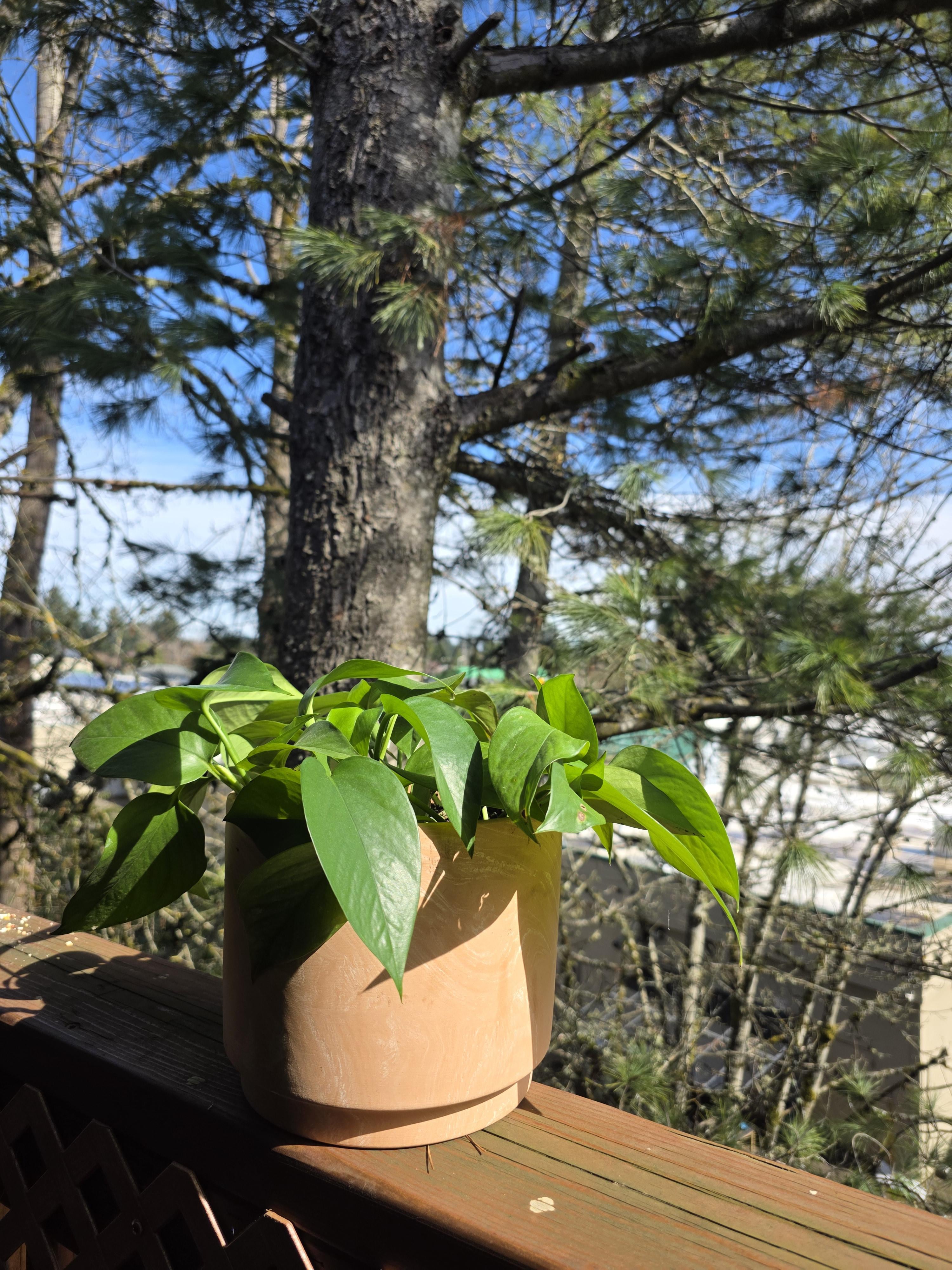 Ich bin vor 4 Jahren im Mai von Texas nach Oregon gezogen und dies ist das erste Mal seit ich hier lebe, dass ich diesen Pothos umgetopft habe! Sie ist ein Ableger einer riesigen Pothos-Pflanze, die ich in Texas zurücklassen musste. Ich liebe sie!