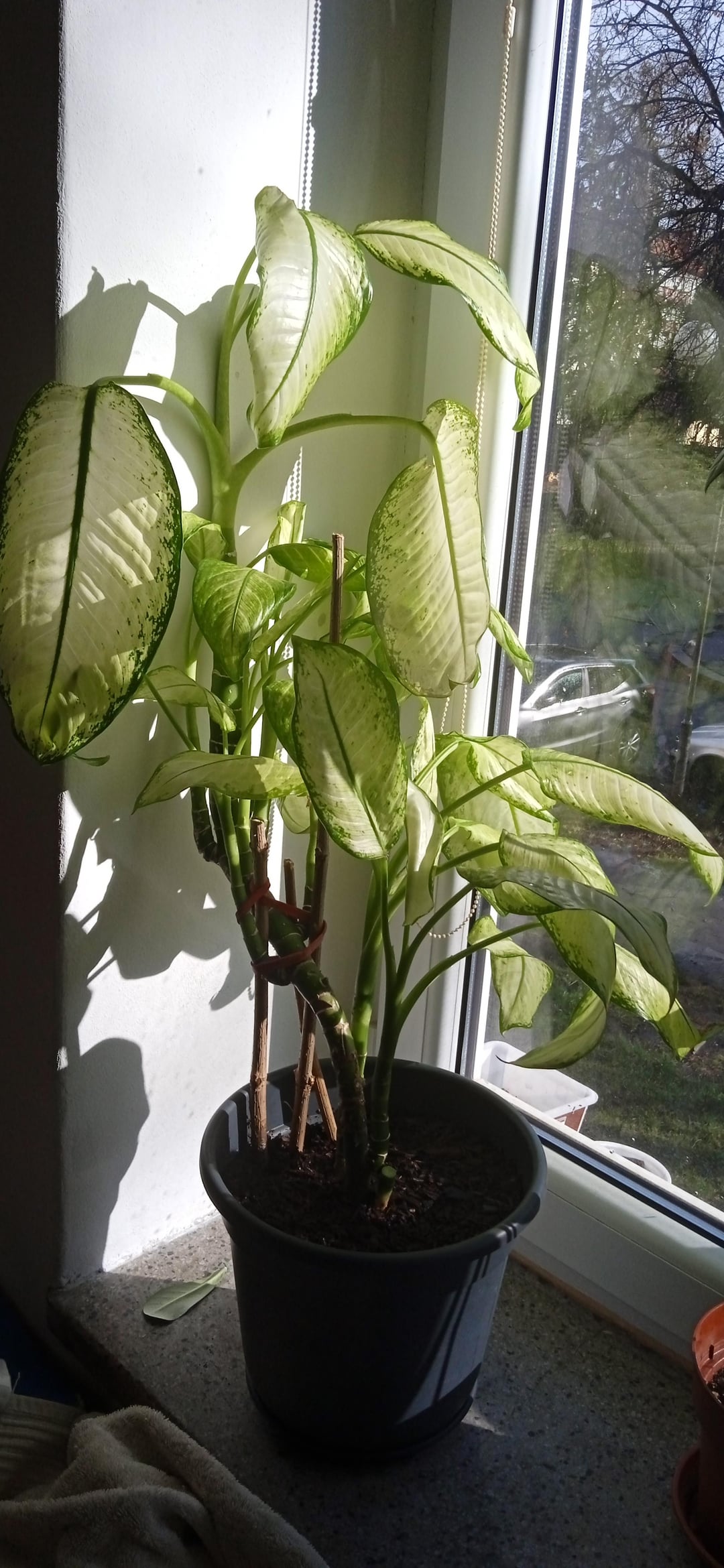Helfen Sie bitte, diese Difenbachie, die ich von meinem Freund bekommen habe, hatte sie schon lange. Sie wuchs sehr schnell, sie war so klein, etwa 5 cm, jetzt ist sie in etwa einer Saison 60 cm groß und sie hat sich verzweigt, sie hatte sehr große Blätter, aber sie fielen ab, weil meine Mutter sich schlecht um sie gekümmert hat. Kennen Sie den Sortennamen nicht??😍