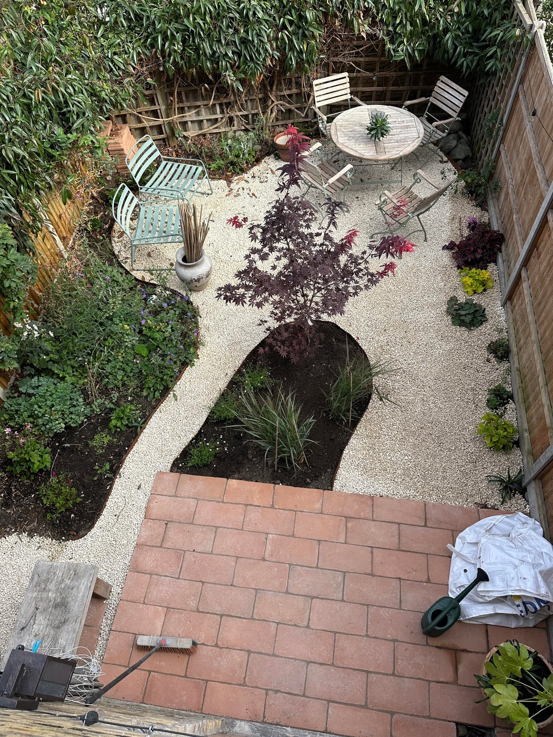 Unser kleiner Garten, nachdem er letzten Herbst fertiggestellt wurde. Seitdem haben wir noch ein paar Pflanzen hinzugefügt (darunter einen Amelanchier in der Ecke) und die Clematis am Zaun gegen Sternjasmin ausgetauscht. Da sich noch alles im Aufbau befindet, wird es einige Zeit dauern, bis es fertig ist, aber ich freue mich wirklich darauf, zu sehen, wie es im Frühling und Sommer wieder zum Leben erweckt wird.