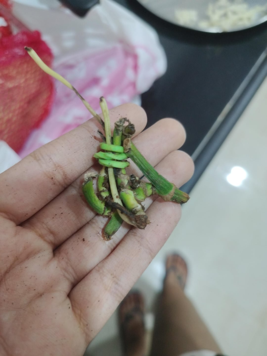 Für die Geldpflanze hatte ich nur 2-3 Knoten mit 3 Stielen (keine Wurzeln)