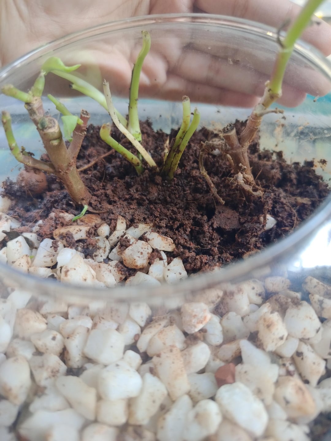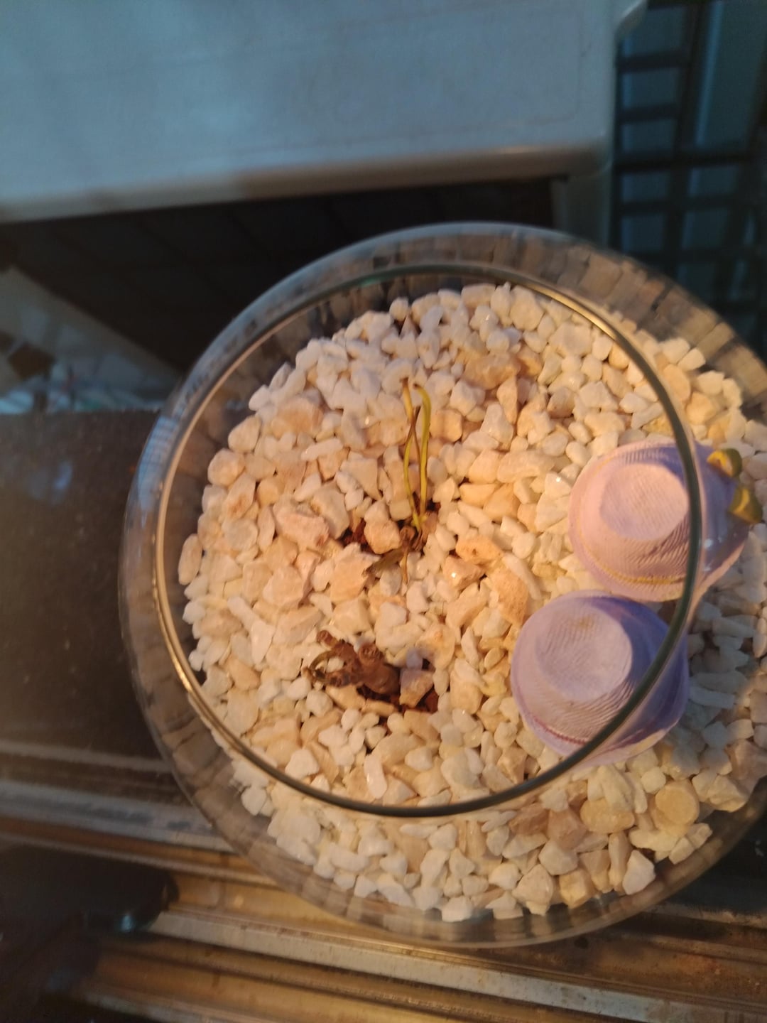 Ich habe dann das Terrarium mit derselben Erde wieder zusammengebaut und die Pflanzen wieder hineingesteckt, aber sie welkten noch mehr 😭😭😭😭