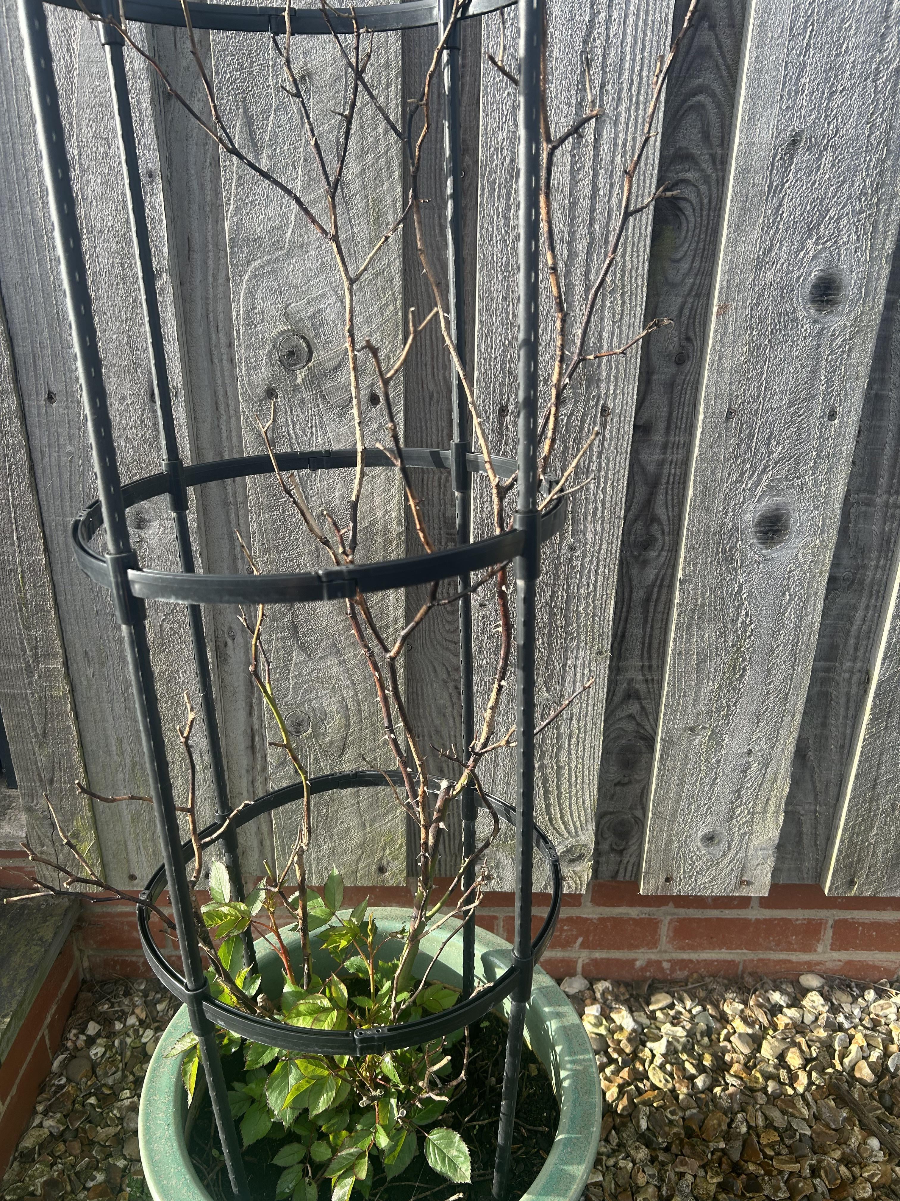 Dies ist mein drittes Jahr mit diesem Rosenstrauch und ich habe keine Ahnung, wie viel ich beschneiden soll. Letztes Jahr war es wirklich offensichtlich, ich habe die toten Teile abgeschnitten und es hat nur kurz geblüht. Dieses Jahr scheint alles bis auf den Grund tot zu sein. Wird sich das ändern oder sollte ich es bis zu den Blättern abschneiden? Weiter oben gibt es einige grüne Stellen, aber keine Blätter.