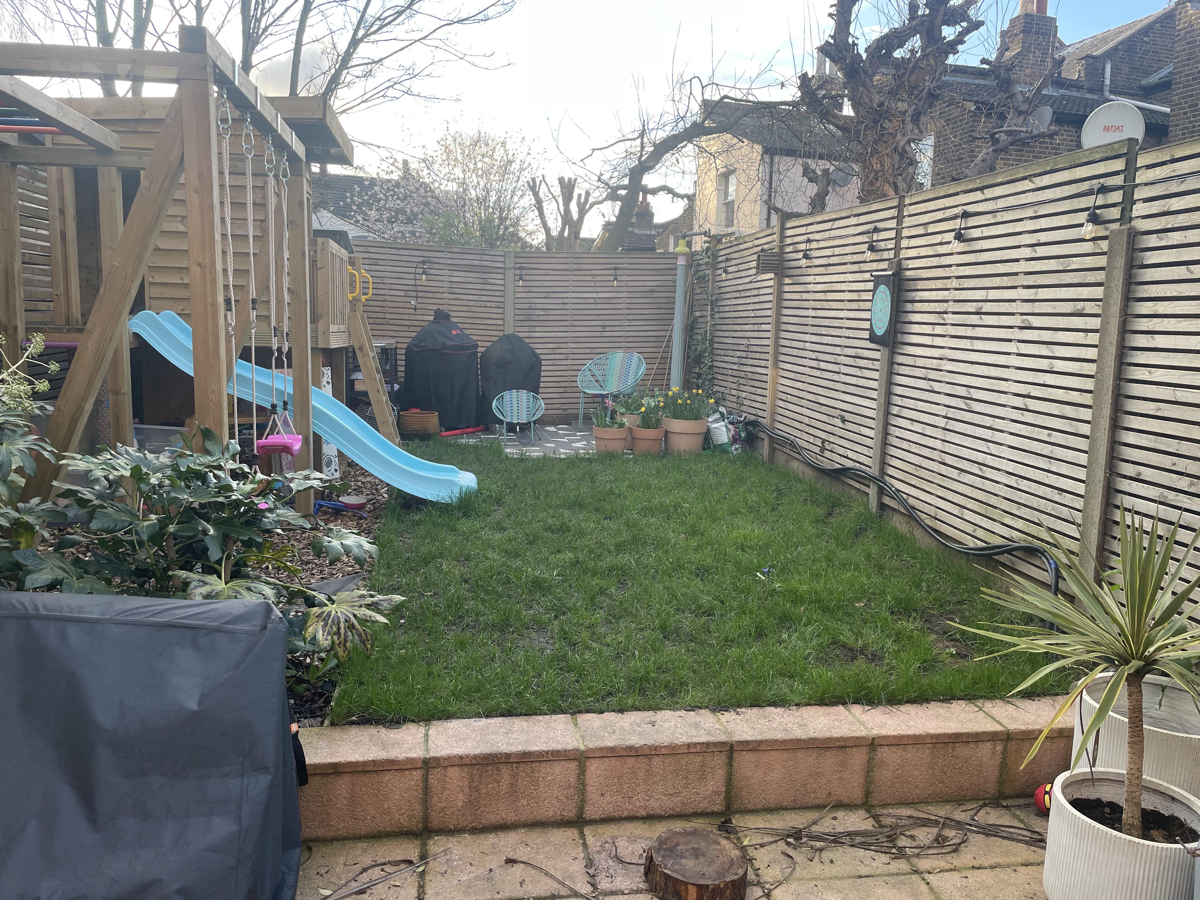 Die Länge beträgt nur etwa 4,2 Meter und ich hatte geplant, sie etwa 60 cm breit zu machen, um sicherzustellen, dass wir immer noch ausreichend Rasen zum Spielen für die Kinder haben – sie sind im Moment 8 und 3 Jahre alt und lieben es, herumzulaufen und von den Schaukeln zu springen!