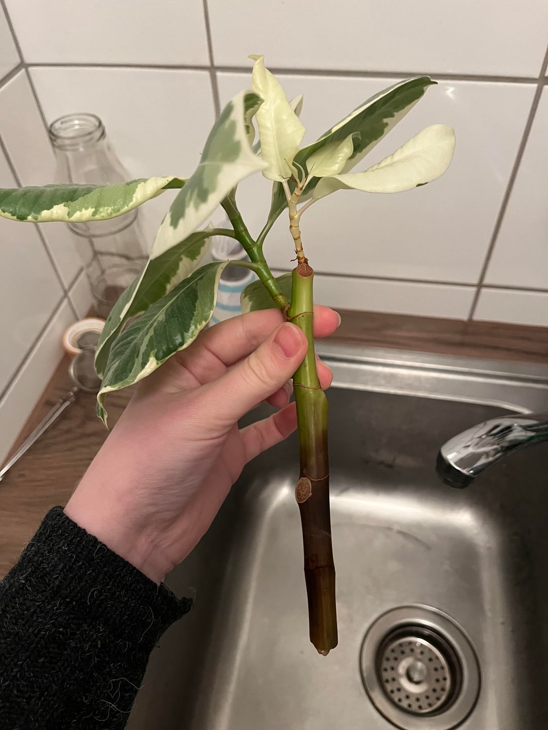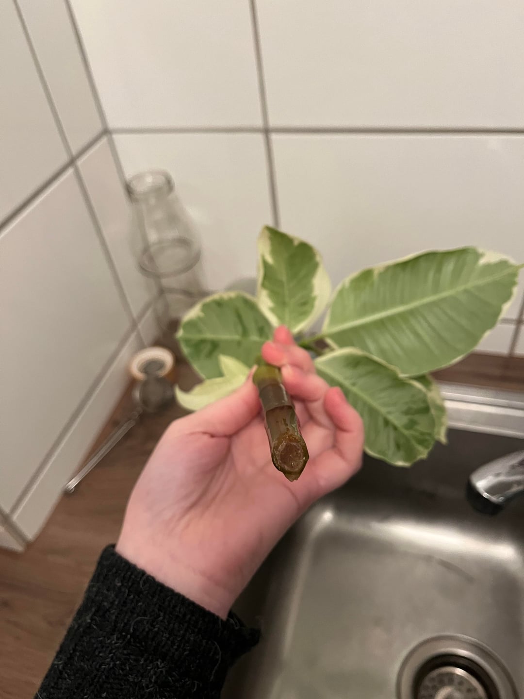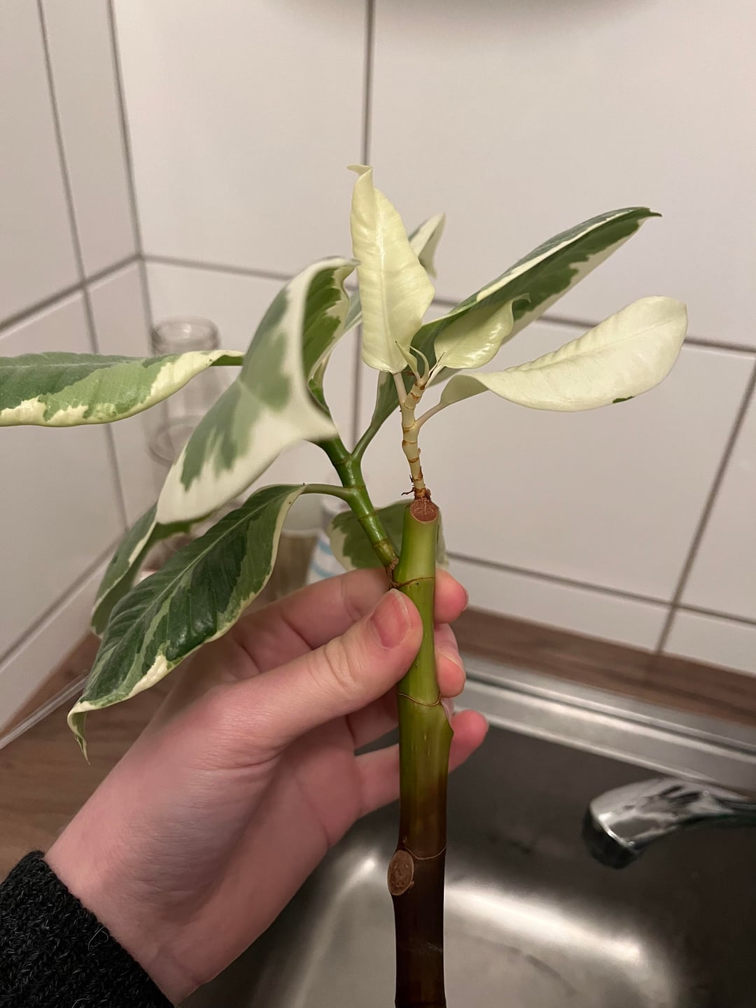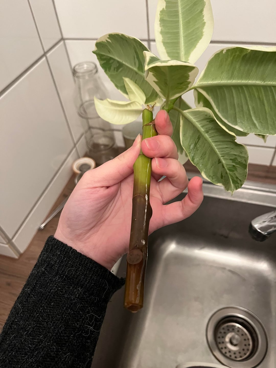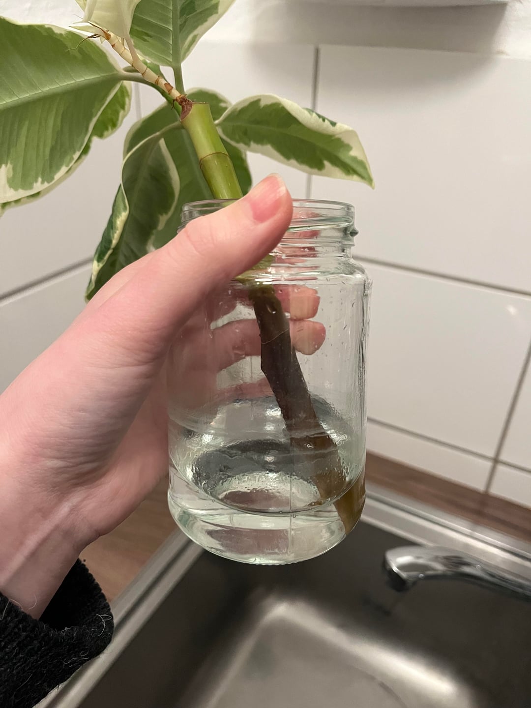 Ich versuche, eine Gummipflanze zu vermehren. Aber im Moment sieht es nicht gut aus (wie auf den Bildern zu sehen), da der Stiel braun wird und keine Wurzeln vorhanden sind. Ich bewahre es in einem Glas Leitungswasser auf und wechsle es alle zwei Tage. Der Steckling ist vom 19. Februar. Die ursprüngliche Pflanze steckt immer noch in der Erde und ich hoffe, dass einige Blätter nachwachsen. Im Moment ist sie nur ein Stäbchen, lol. Was mache ich falsch?