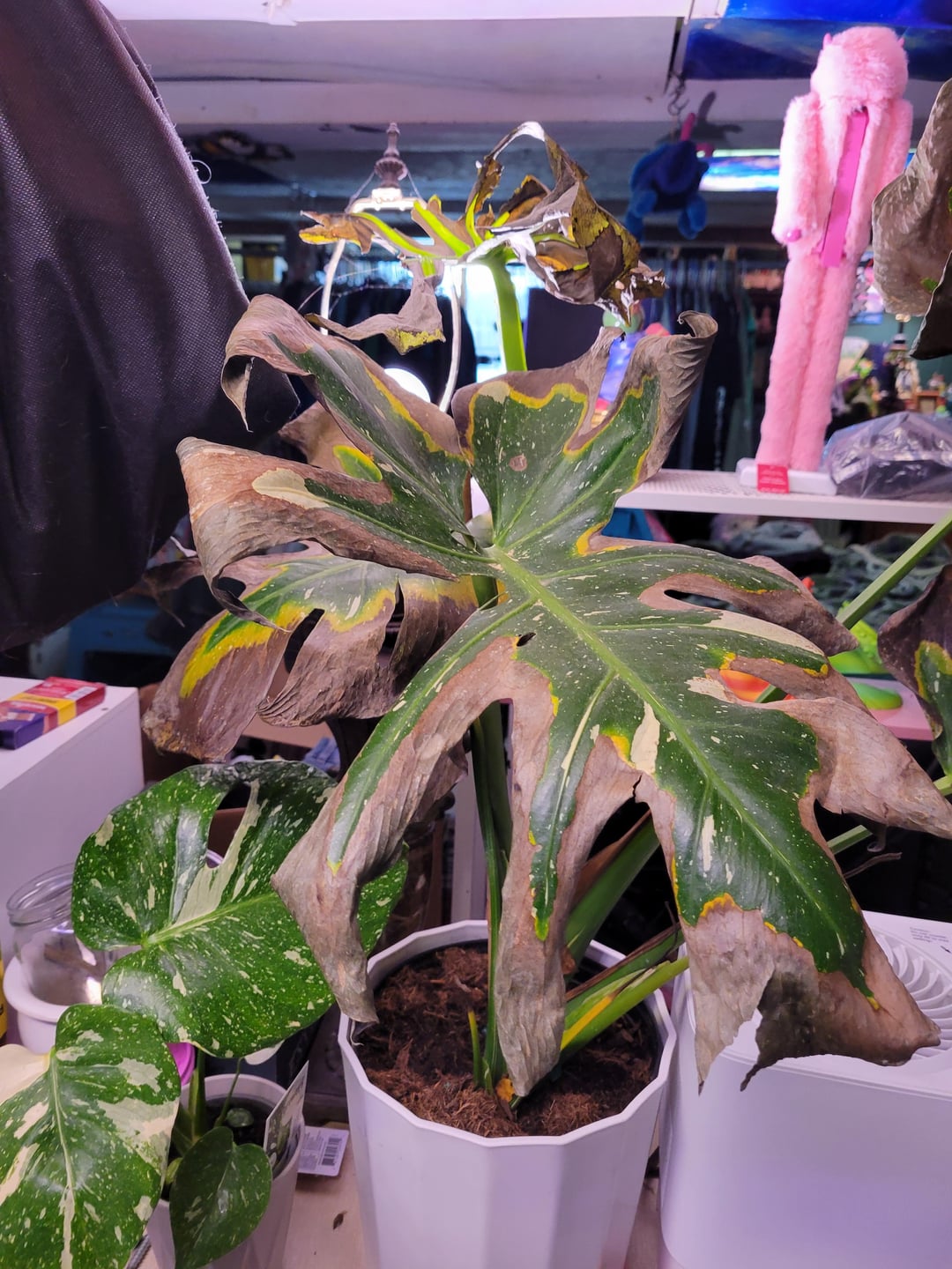 Ich war so aufgeregt, eine so ausgewachsene Pflanze für vierzig Dollar zu sehen, dass ich nicht darüber nachgedacht habe, wie gefährlich es sein würde, sie nach Hause zu bringen, und jetzt sieht sie neben ihrer kleinen, nicht im Gefrierschrank verbrannten Schwester einfach nur traurig aus