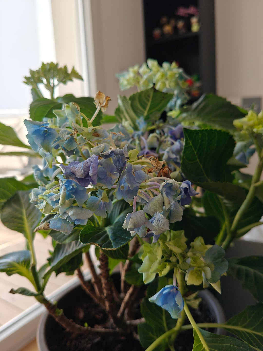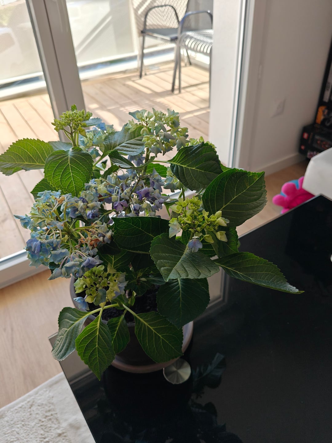 Was meine Hortensie angeht, sind heute Morgen ihre Blüten ein wenig abgefallen, auch die Blätter, also habe ich sie großzügig gegossen (mit der ersten Zugabe von Dünger). Die meisten Blüten sind wieder kräftig geworden, mit Ausnahme der größten, daher habe ich auch Angst, zu viel gegossen zu haben… Was ist Ihre Meinung? Und was sind eure Tipps?