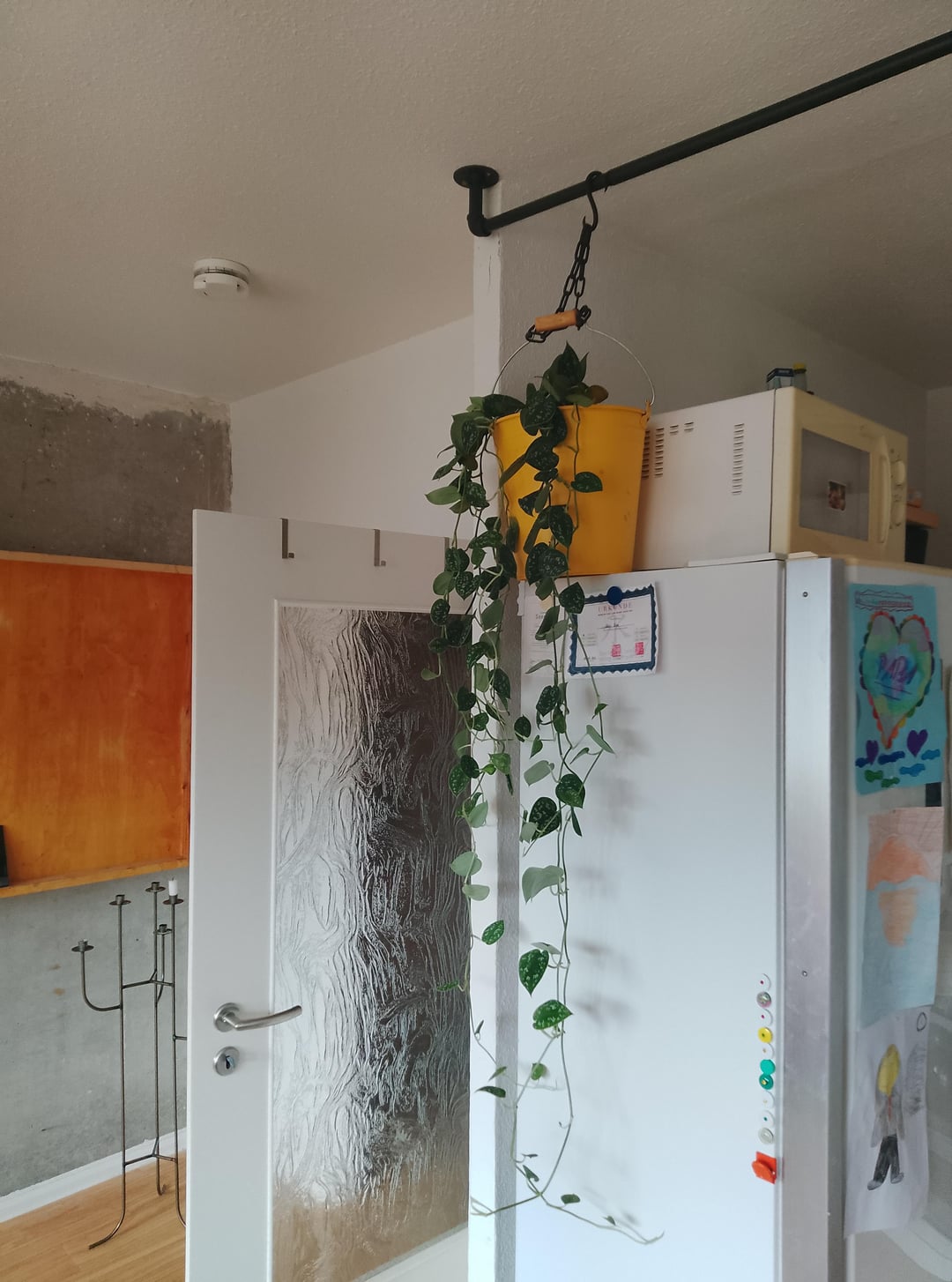 auch habe ich, wie ihr seht, die Untertöpfe in ziemlich große Übertöpfe gestellt, etwas erhöht, damit Licht rankommt. allerdings bin ich mir bei der Tute am Kühlschrank nicht sicher, ob das so gut geht. andererseits warum nicht. Licht kommt hier ab Vormittag bis frühen Nachmittag volle Kanne rein. wollte aber gern erstmal n Raumtrenner schaffen zur Küche und daher eher "Schattenpflanzen" genommen. und möglichst pflegeleicht sollte es sein, für erste große Erfolgserlebnisse. die müssen jetzt aber auch sitzen, daher bitte ich um euren Senf.