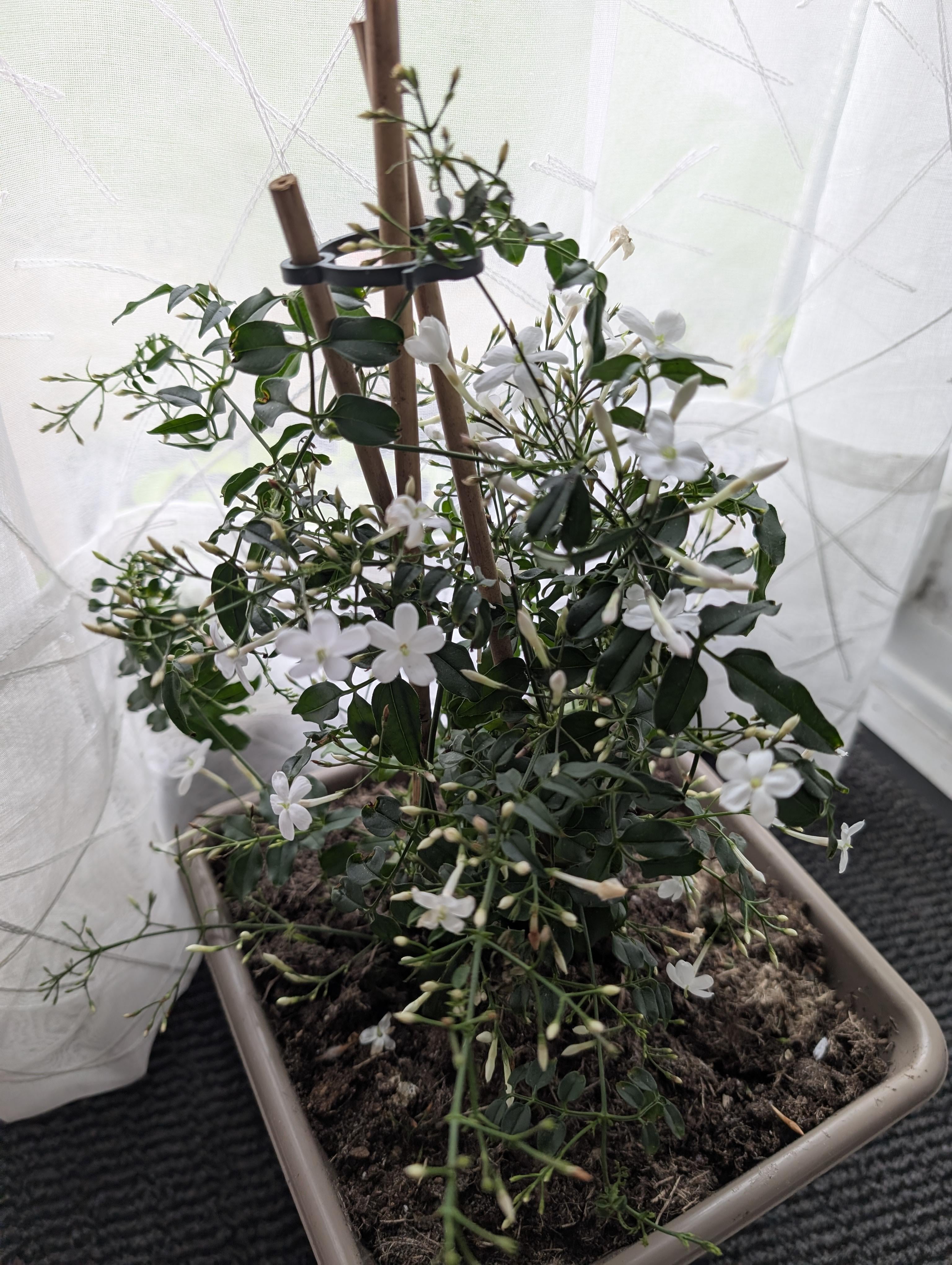 Ich habe diesen Jasmin vor ein paar Wochen in einem kleineren Topf gekauft und in diesen umgepflanzt. Zur Zeit ist es drinnen und es geht ihm gut. Blumen duften so schön. Meine Frage ist, ob es in Ordnung ist, es in den Garten zu bringen? Und wird es den Winter überstehen oder müsste ich es wieder einbringen?