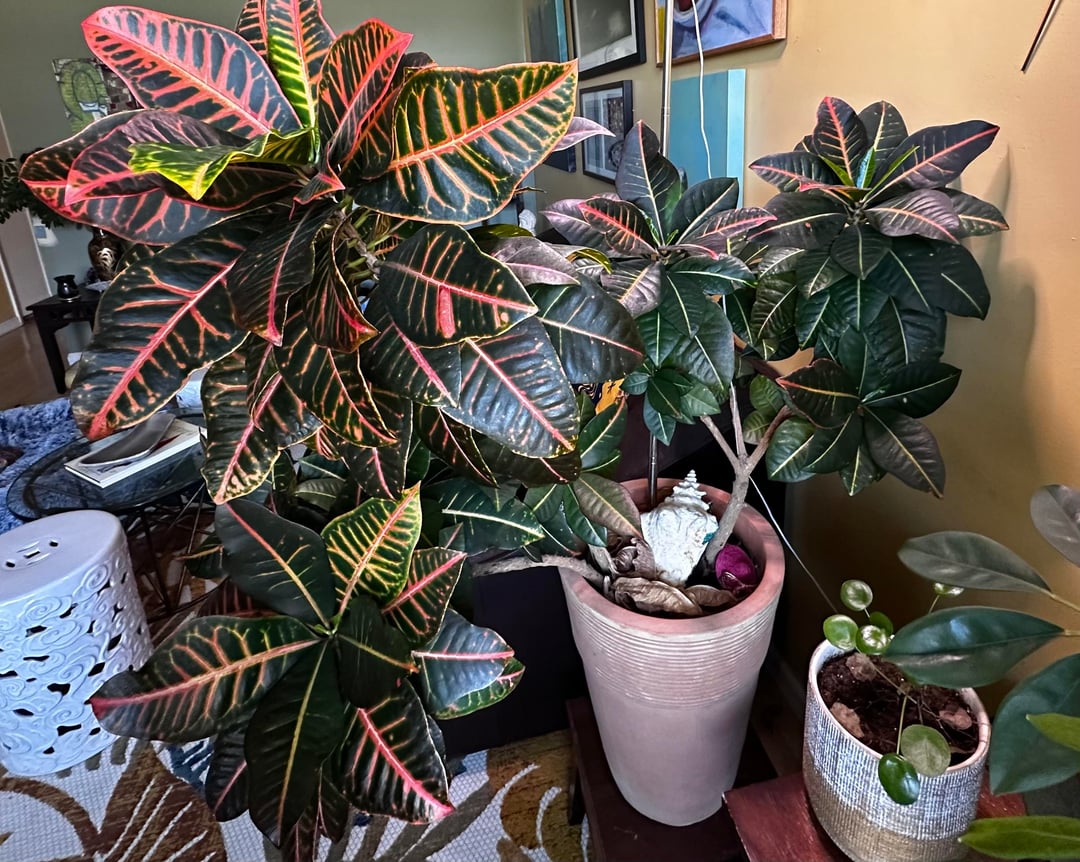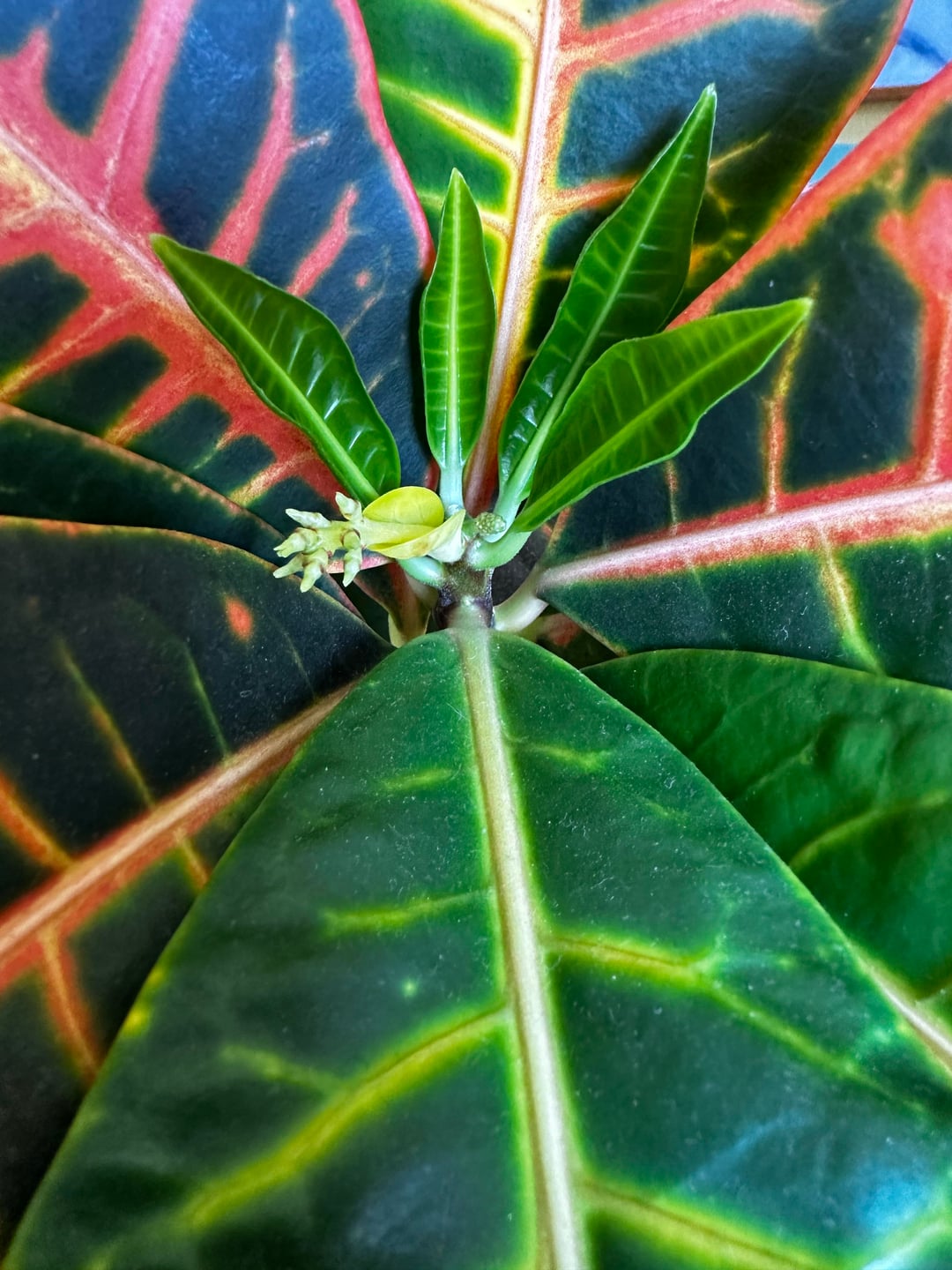 Croton-Transformation über sechs Jahre. (Das erste Bild ist vom Februar 2020) Ich bekam diesen Croton geschenkt, als mein Freund quer durch das Land zog. Croton blüht jetzt zum ersten Mal und ich bin gespannt