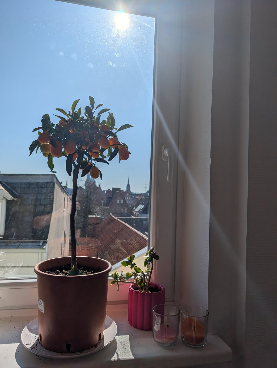 Von allen denkbaren Möglichkeiten, wĂŒrde ich die, dass ein ZitrusbĂ€umchen, das sich in Spanien drauĂen in der prallen Sonne pudelwohl fĂŒhlt, auf einer deutschen Fensterbank im MĂ€rz drinnen Sonnenbrand bekommt, als die am wenigsten wahrscheinliche einstufen đ
