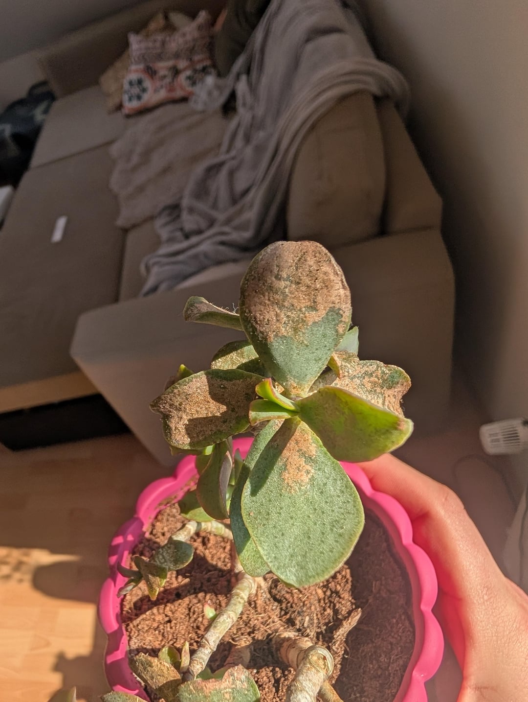 Generell wĂŒrde ich Sonnenbrand auf InnenfensterbĂ€nken bei allen Pflanzen als die allerletzte ErklĂ€rung fĂŒr irgendwelche Flecken in Betracht ziehen: meistens ist es das nicht.