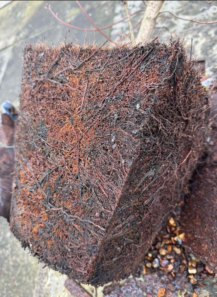 Hallo, ich topfe eine Acer, die mir meine Mutter geschenkt hat, um. Es liegt seit 15 Jahren im selben Topf. Die Pflanze ist etwa 4 bis 5 Fuß hoch. Diese Roots-Bilder sind absolut solide, es gibt absolut keine Möglichkeit, sie auseinanderzureißen. Es ist von allen Seiten wie ein Wurzelteppich. Was tun damit?