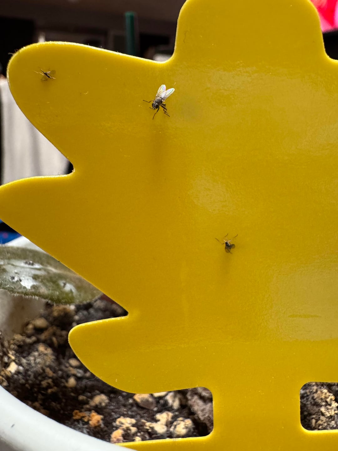 Kürzlich bemerkte ich winzige Fluginsekten in meinem Haus und hatte den tiefen Verdacht, dass die Topfpflanzen, die mein Ehepartner von Costco bekam, möglicherweise mit Trauermücken infiziert waren. Ich habe bei allen meinen Pflanzen Kieselgur auf den obersten Zentimeter der Erde gegeben und Klebefallen angebracht. Ich habe das vor 2 Wochen gemacht.