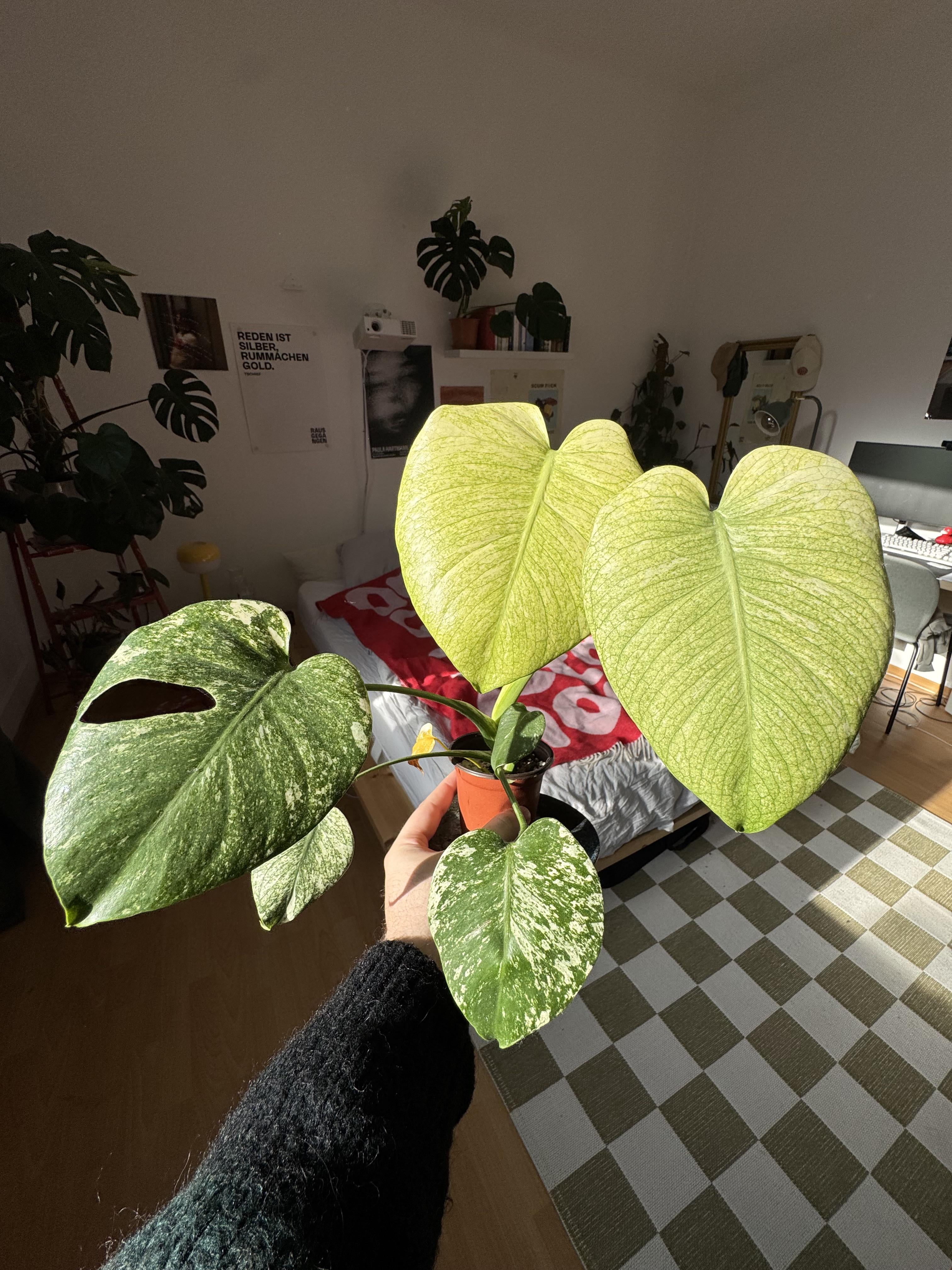 Gibt mir immer mehr schöne Blätter, freue mich schon auf die ersten richtig fenestrierten. Jetzt im anstehenden Frühling dürfte einiges gehen 🙂