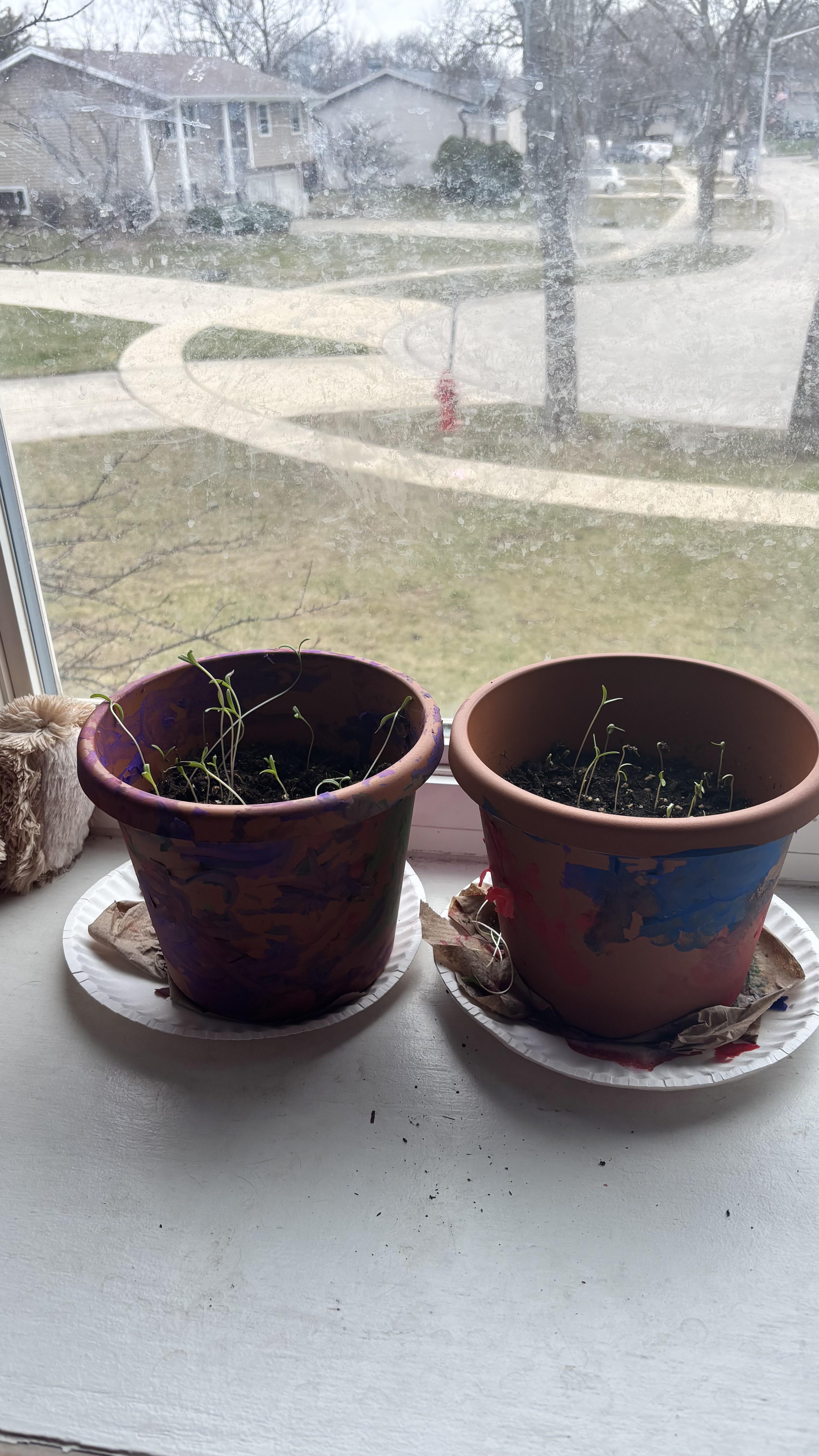 Okay, ich bin Gärtner, aber das ist das erste Mal, dass ich drinnen Blumen anbaue. Meine Kinder im Vorschulalter bemalten die Töpfe, gaben Erde und Samen hinein und bewässerten alles selbst. Da mein Klassenzimmer keine Fenster hat, habe ich mir eine Pflanzenlampe gekauft, und sie ist so gewachsen, dass sie großartig zu sein scheint.