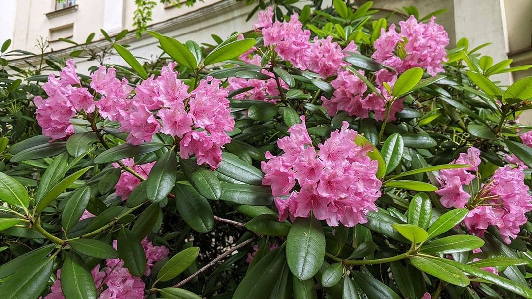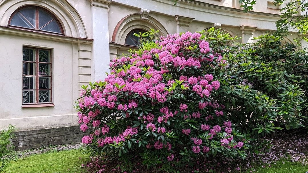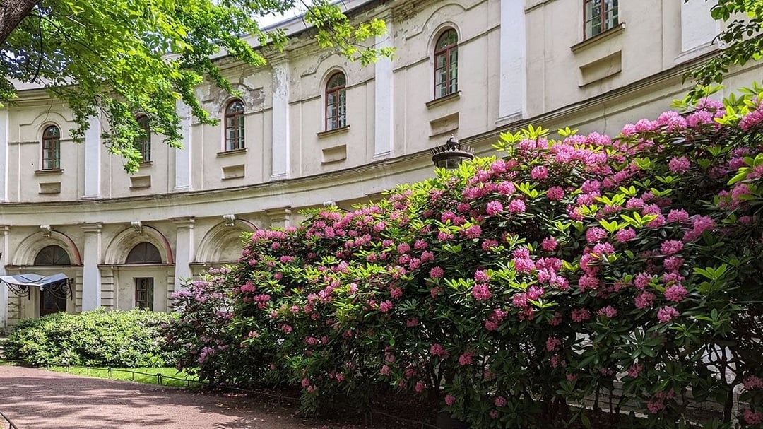 Home»Blumen»Rhododendren blühen in der Nähe des Küchengebäudes des Anitschkow-Palastes