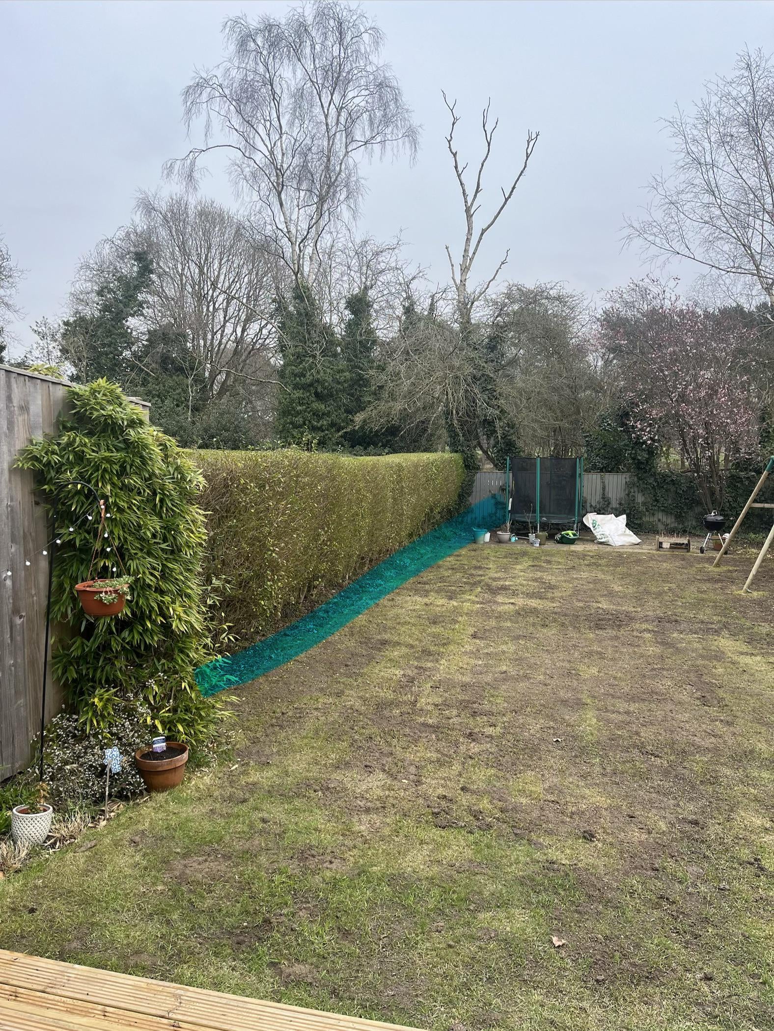 Bitte ignorieren Sie den kürzlich vertikutierten Rasen. Irgendwelche Ideen, was man mit diesem begrenzten Bereich direkt unter der Hecke auf der linken Seite machen kann? Es ist zwar nicht groß genug für ein Blumenbeet, da der Rasen fast bis zum Rand reicht, aber jedes Jahr wird er zu einem Chaos aus Unkraut, Zweigen und allgemeiner Unordnung. Ich habe überlegt, ob ich es einfach mit Holzspänen abdecken soll, aber ich habe gesehen, dass andere davor gewarnt haben. Irgendwelche Gedanken? TIA