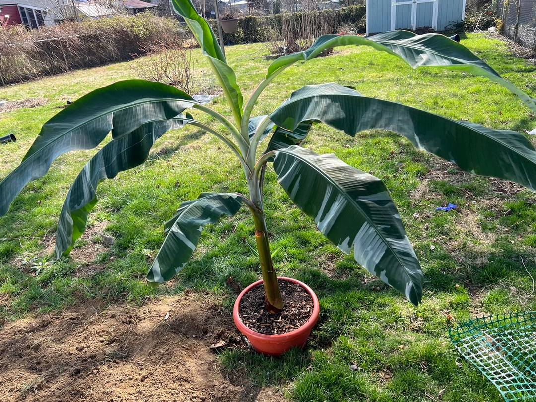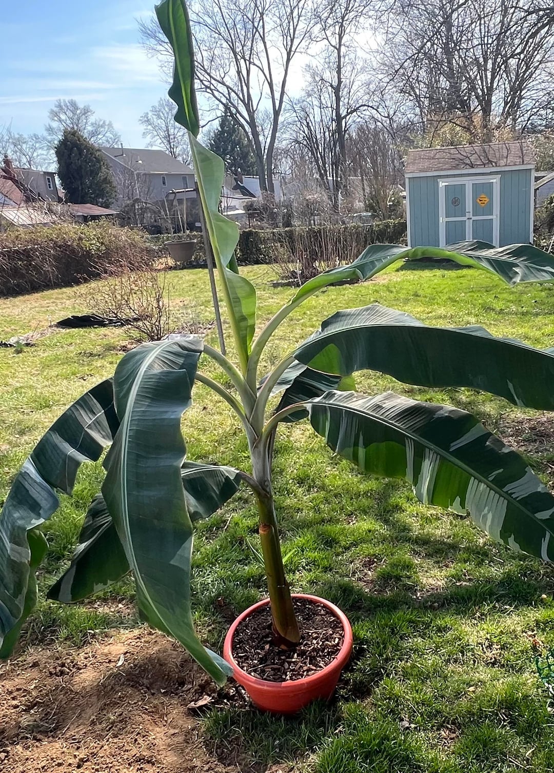 Ich hatte drinnen diese bunte Version einer Bananenstaude. Mir geht es nicht um Obst, sondern nur um das Aussehen. Ich habe ein paar Musa-Cold-Hardys, die ich schütze und die ich jedes Jahr wiederkomme.