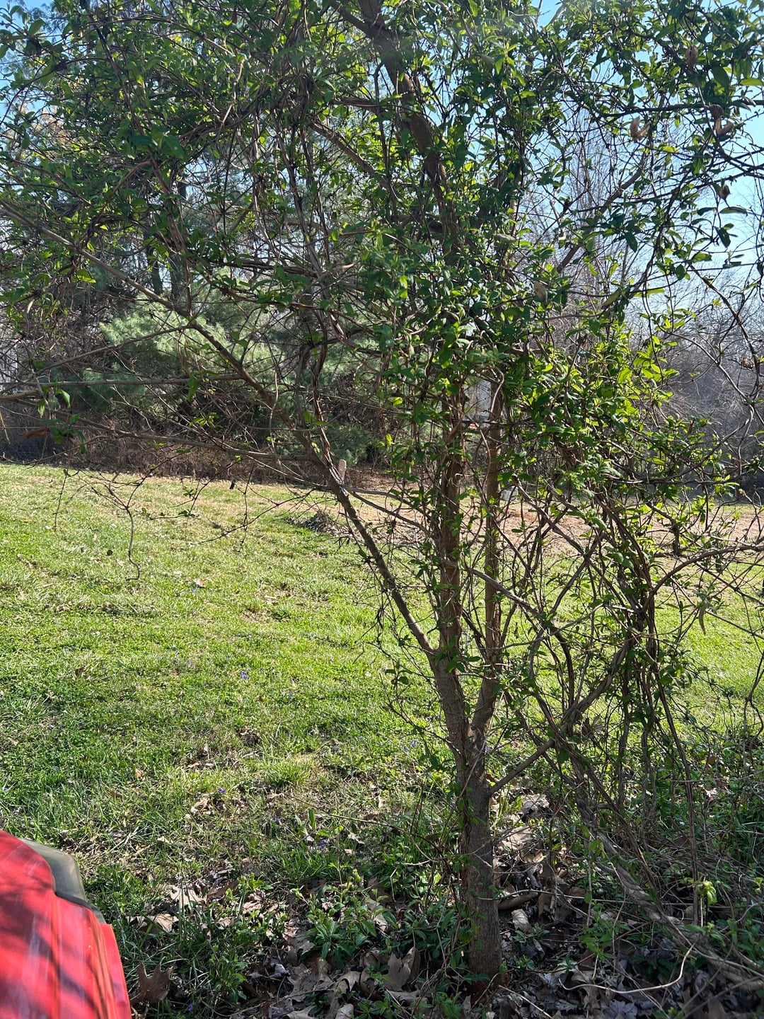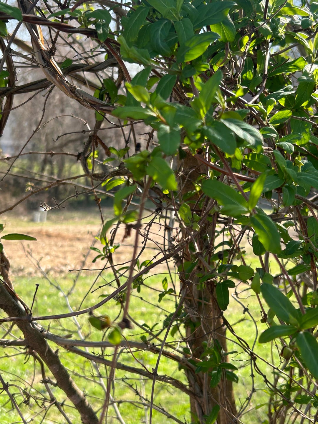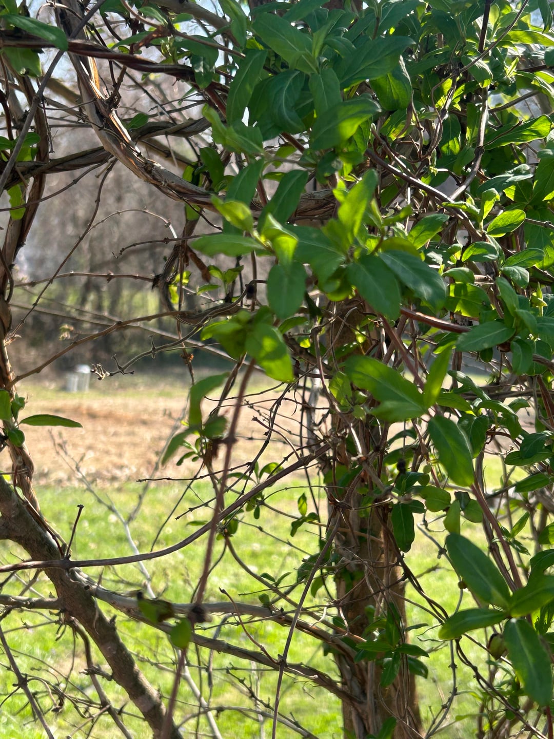 Ich habe 3 Hektar Land mit ein paar Parzellen mit Bäumen, und auf einem dieser Hektar reihen sich Brombeersträucher (wilde Brombeeren), die ich zu kontrollieren versuche, um die Beeren zuverlässig ernten zu können. Fast alle Pflanzen sind aus eigenem Antrieb hier entstanden und ich unterstütze die Teile des Ökosystems, die mich ernähren und auch der Tierwelt helfen. Große Freiflächen werden in große Beete für den Unterhaltsgartenbau umgewandelt. Ich bemühe mich, den Garten der Natur und meinen Garten koexistieren zu lassen. Diese Rebe übernimmt die gesamte dichte Vegetation und die Bäume. Ich habe sogar einige alte Ahornbäume, die auf den unteren Ebenen von dieser Rebe bedeckt werden. An manchen Stellen ist das Zeug so dick wie mein Handgelenk. Es verdrängt die Trompetenblumen und Maipops und hat bereits einige Ahorn- und Walnusssetzlinge getötet.