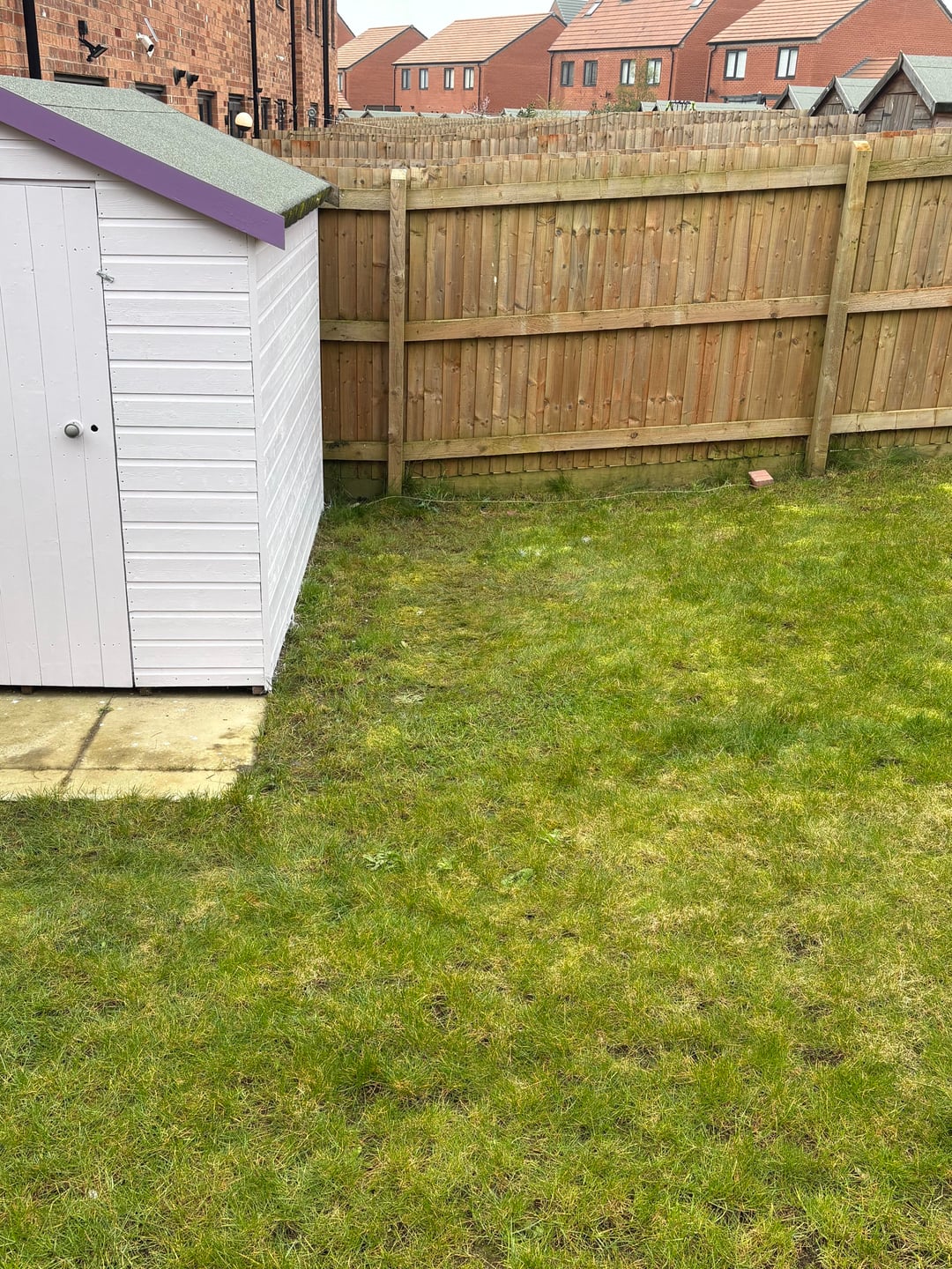 Wir sind letztes Jahr in unser Haus eingezogen und machen uns endlich daran, den Garten zu einem schönen Ort zu machen. Wir würden gerne ein paar Ränder um die Zäune herum anbringen, machen uns aber Sorgen wegen des Gefälles, das dazu führt, dass sich das Wasser zum Schuppen sammelt. (Bild 1). Der Plan bestand darin, eine Entwässerung mit Steinen anzubringen. Aufgrund des hohen Nachbarhauses gibt es in diesem Teil des Gartens auch nur sehr wenig Sonne.