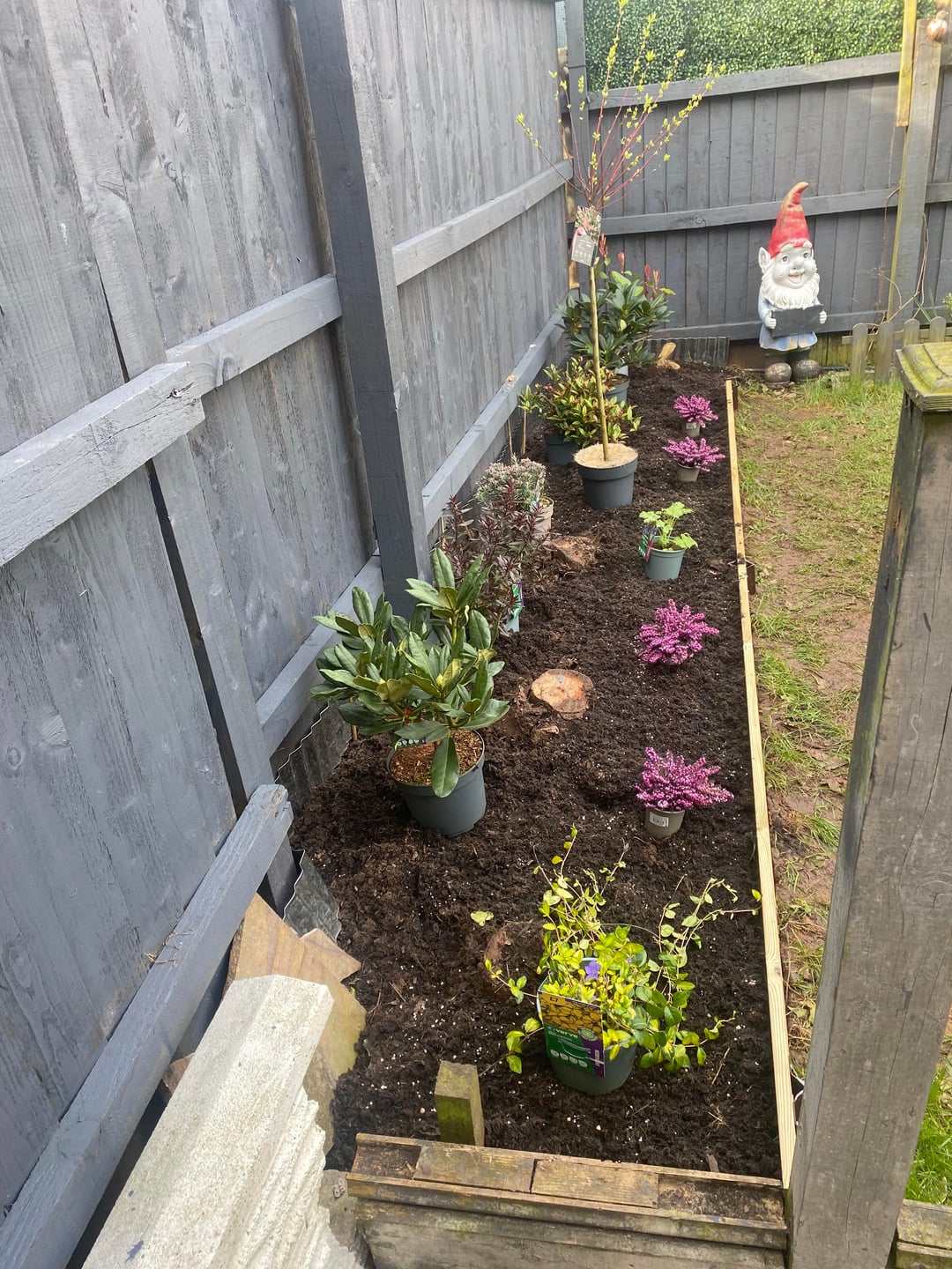 Wir haben 6 Tannen gefällt und ein Blumenbeet angelegt. Welche anderen immergrünen, vorzugsweise blühenden Pflanzen könnte ich hier pflanzen, bevor ich mit dem Mulchen beginne? Bedenken Sie, dass dieser Teil des Gartens niemals direktem Sonnenlicht ausgesetzt ist.