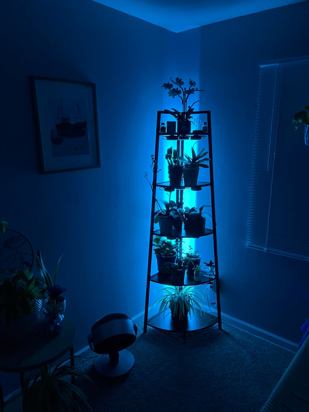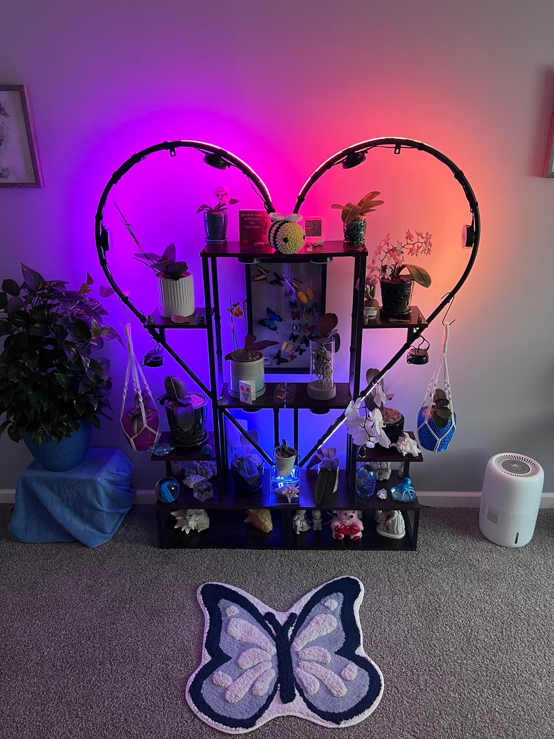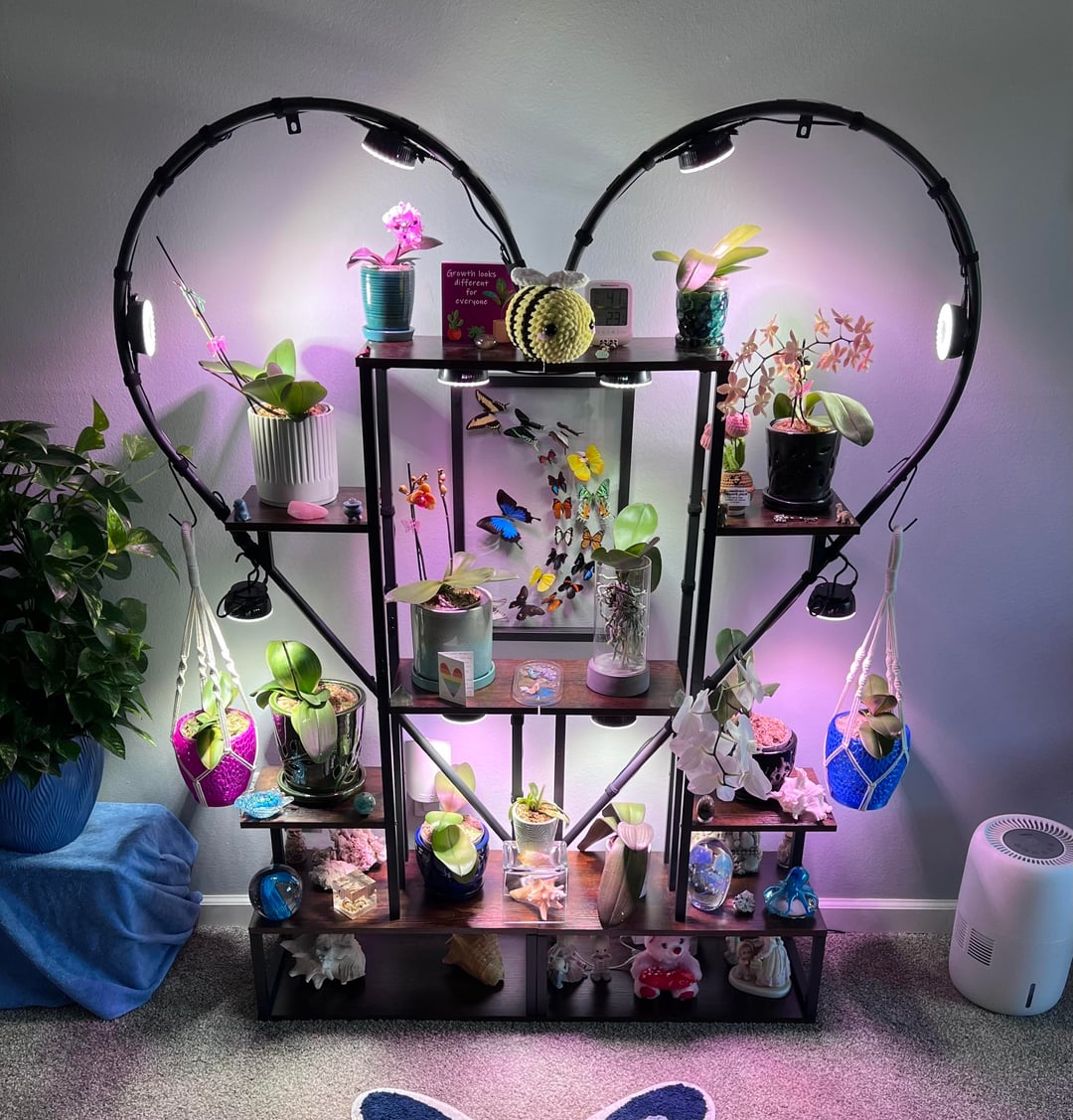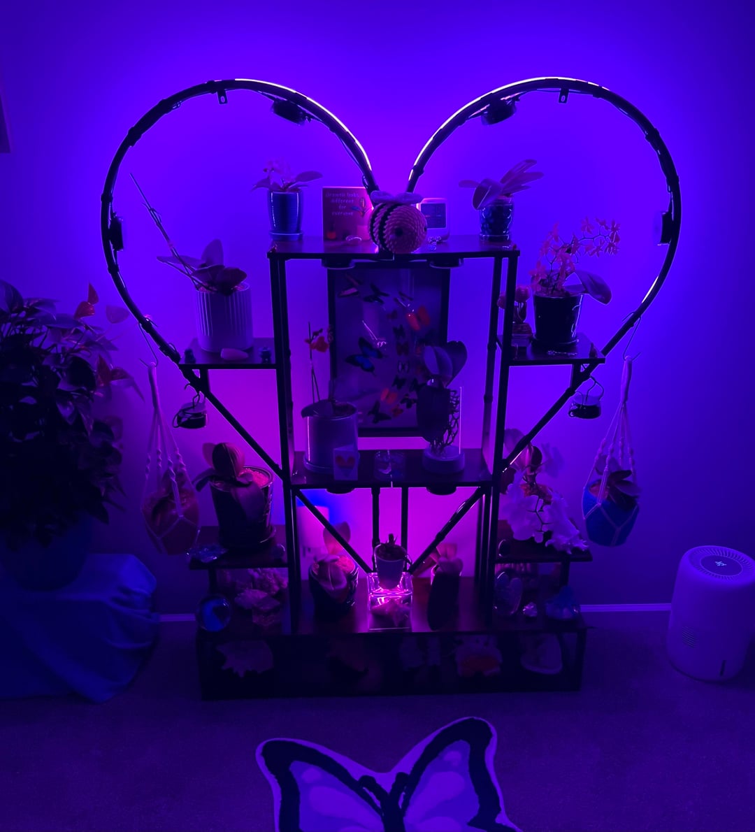Ich habe gerade mein zweites Pflanzenregal (das Eckregal) fertiggestellt, also habe ich jetzt Gründe, mehr Orchideen zu kaufen. 🤪 Den Herzständer, den ich hatte, habe aber gerade das LED-Seil hinzugefügt. Es herrscht Tag und Nacht eine tolle Stimmung und ich bin super zufrieden mit dem Ergebnis.