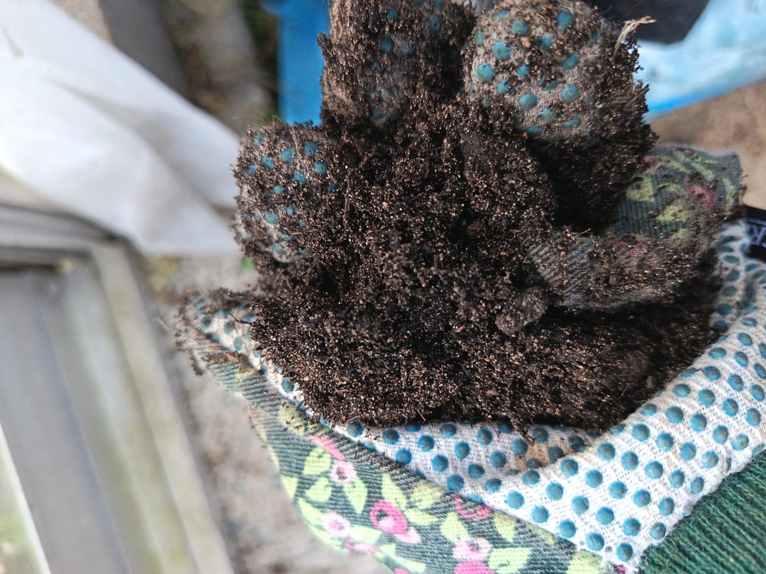Außerdem ein Bild von der Erde, mit der ich es gepflanzt habe. Es ist voller kleiner weißer Dinger, die mich an Insekteneier erinnern. Vielleicht habe ich es unwissentlich in von Parasiten befallener Erde gepflanzt? Wenn ja, was mache ich?