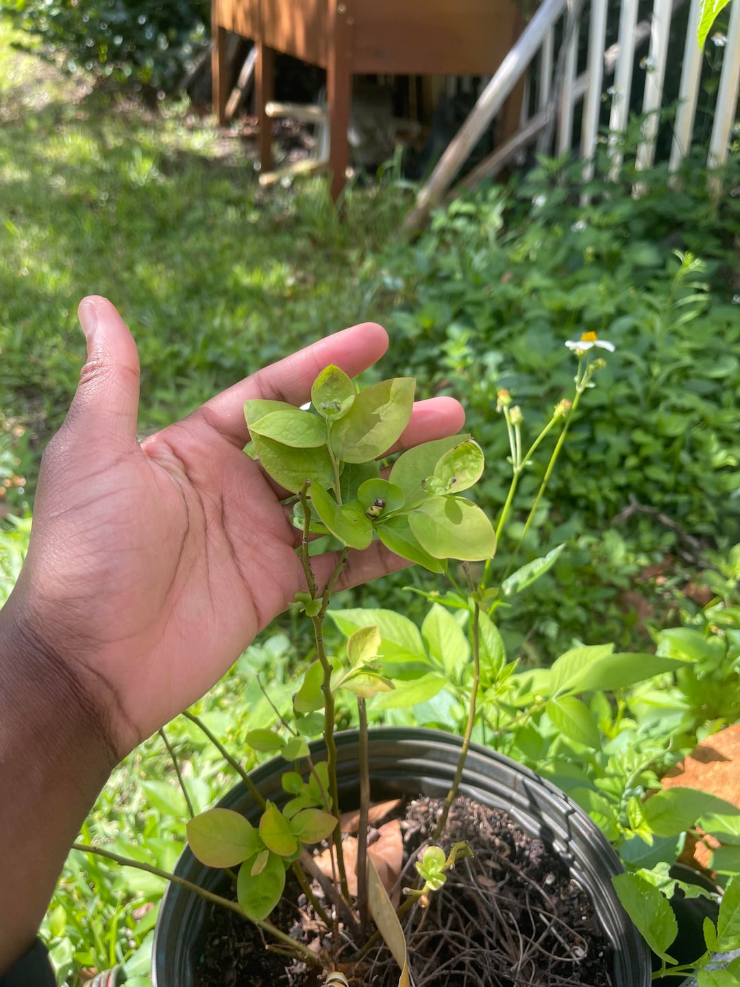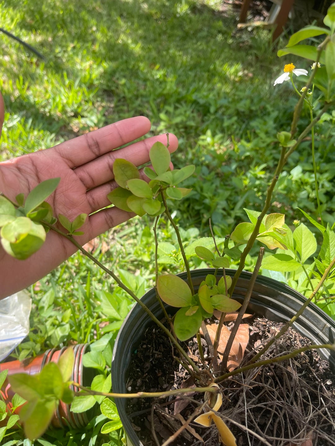 Ich habe diese Blaubeerpflanze vor zwei Jahren von Home Depot mitgebracht. Es waren viele Blätter darin, aber sie fühlten sich ab und die Pflanze sah aus, als ob sie seit etwa einem Jahr tot wäre. Mit dem Wechsel der Jahreszeiten wird die Pflanze grün, es wachsen ein paar Blätter und die Pflanze wird wieder braun. Zuerst habe ich es aus dem Topf genommen und in die Erde gesteckt, um zu sehen, ob es für das Wachstum besser wäre, aber das hat nicht viel geholfen, also habe ich es im Dezember wieder in seinen ursprünglichen Topf gesetzt. Ich habe Hühnerkotdünger hinzugefügt und jetzt beginnt es wieder zu wachsen. Was kann ich tun, damit es Beeren produziert oder gesünder wird, wenn ich in Südflorida lebe?