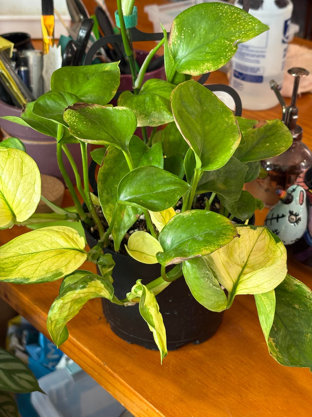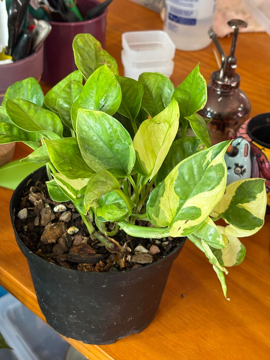 Ich habe einen Lemon Top und einen Lemon Meringue Pothos mitgenommen, die komplett umgedreht waren. Ich war mir nicht einmal sicher, ob sie richtig markiert waren, aber aus einer Laune heraus bekam ich beide. Nach ein paar Wochen mit SANSI-Lichtern, gutem Boden und Nährstoffen zeigen sie ihr wahres Gesicht.