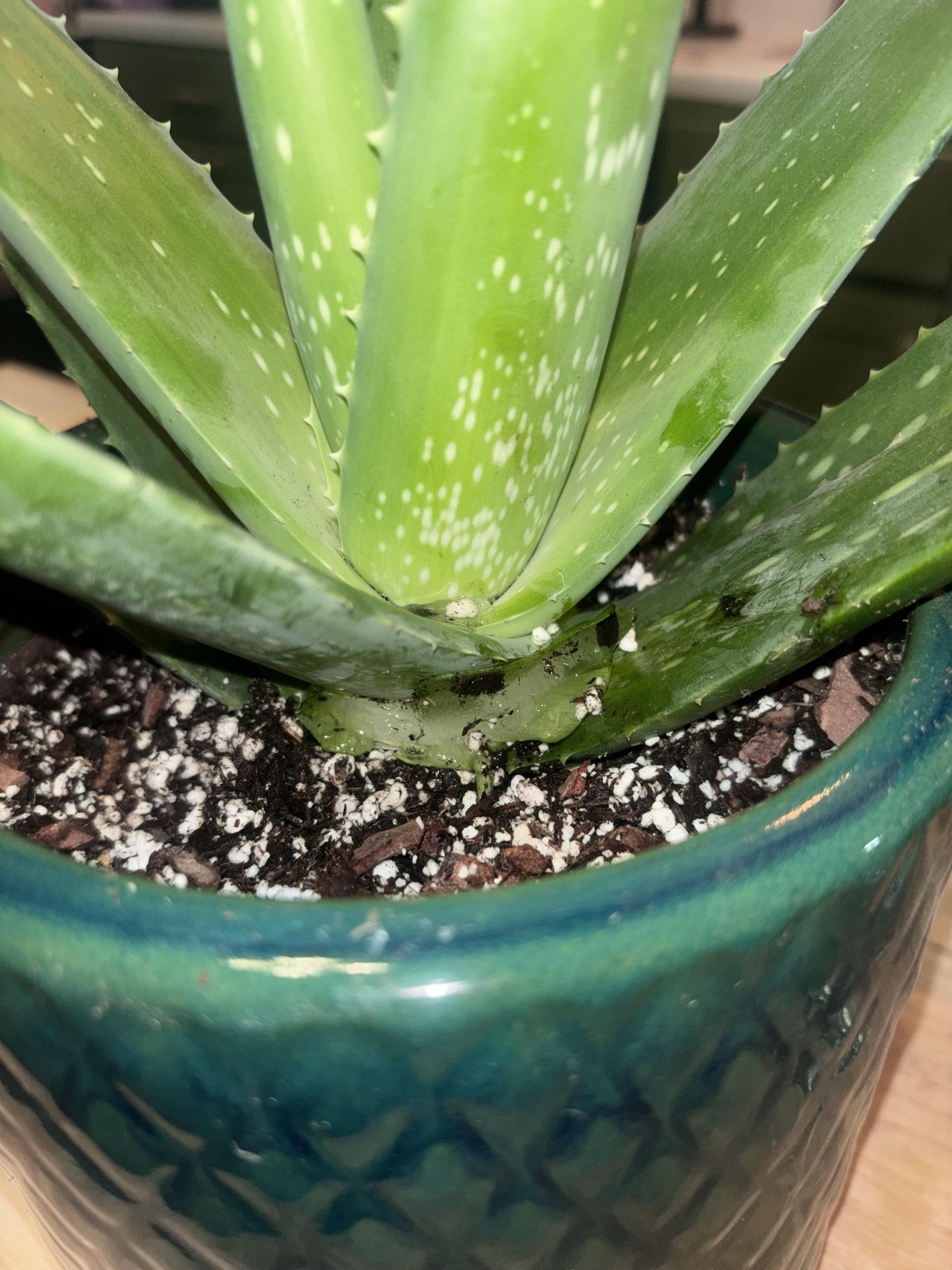 Ich habe sie umgetopft und dabei einen Soldaten verloren. Allerdings ist die Basis immer noch am Boden befestigt und ich habe sie mit einer Schere so nah wie möglich am Boden abgeschnitten, aber da ist immer noch ein kleiner Brocken mit dem Gel drin. Ich habe Angst davor, sie zu töten, weil ich mit Zimmerpflanzen noch nicht so vertraut bin und diese Aloe bisher sehr gut gedeiht, also möchte ich nichts tun, was ihr schadet. Wenn jemand bestätigen kann, ob es in Ordnung ist, es seinen Lauf zu lassen, ohne das untere Stück dieses Blattes zu entfernen, wäre ich dankbar!