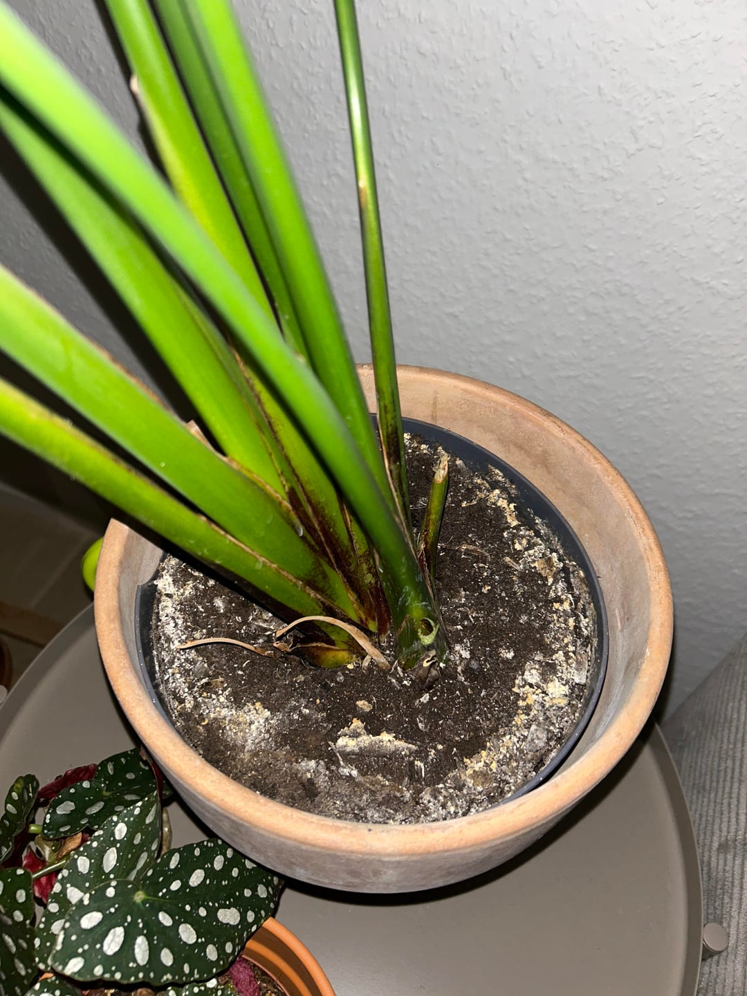 Jetzt bin ich unsicher, ob ich es hier mit beginnender Fäulnis zu tun habe, obwohl die Wurzeln noch gesund wirken, oder ob es „nur“ ein Problem durch zu viel bzw. ungleichmäßiges Gießen ist.