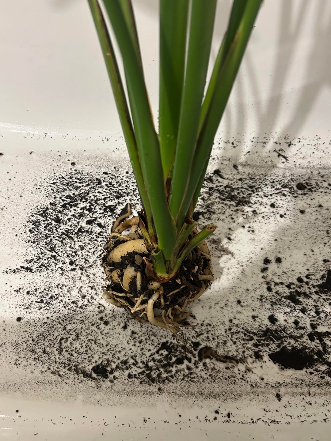 Ich vermute trotzdem, dass das Problem mit meinem Gießverhalten zusammenhängt. Ich habe sie etwa einmal pro Woche gegossen. Die oberste Erdschicht war dabei oft trocken, aber beim Umtopfen habe ich gemerkt, dass es im Wurzelbereich deutlich feuchter war als erwartet. Möglicherweise hat sich unten im Topf dauerhaft Feuchtigkeit gehalten.