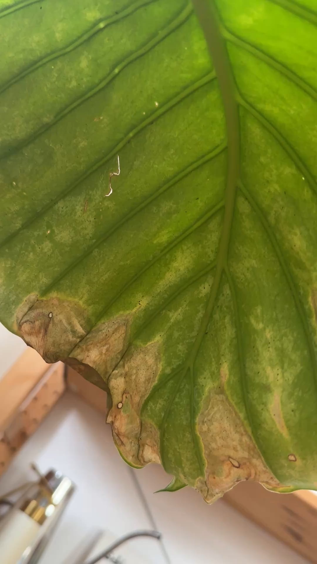 5. Denke auch, dass es Thripse sind. Wie die anderen Kommentare schon schrieben solltest du das schnell behandeln. Zusätzlich solltest du die Pflanze isolieren und auch alle anderen Pflanzen sehr genau untersuchen, falls du welche hast. Thripse können fliegen und verbreiten sich dann im Zimmer.
