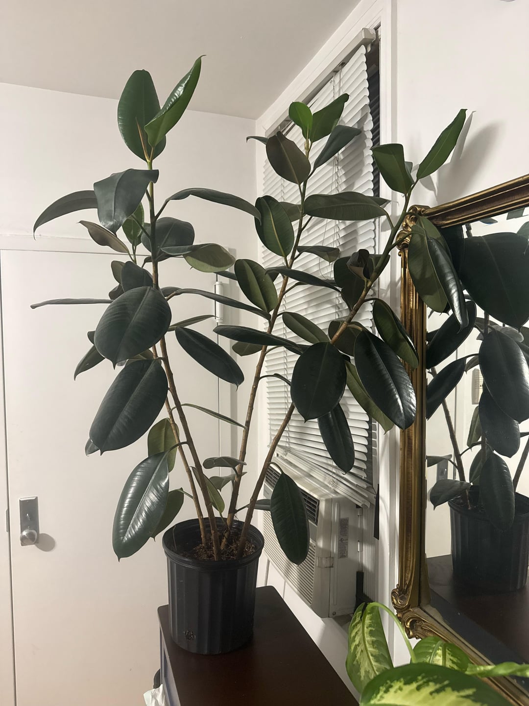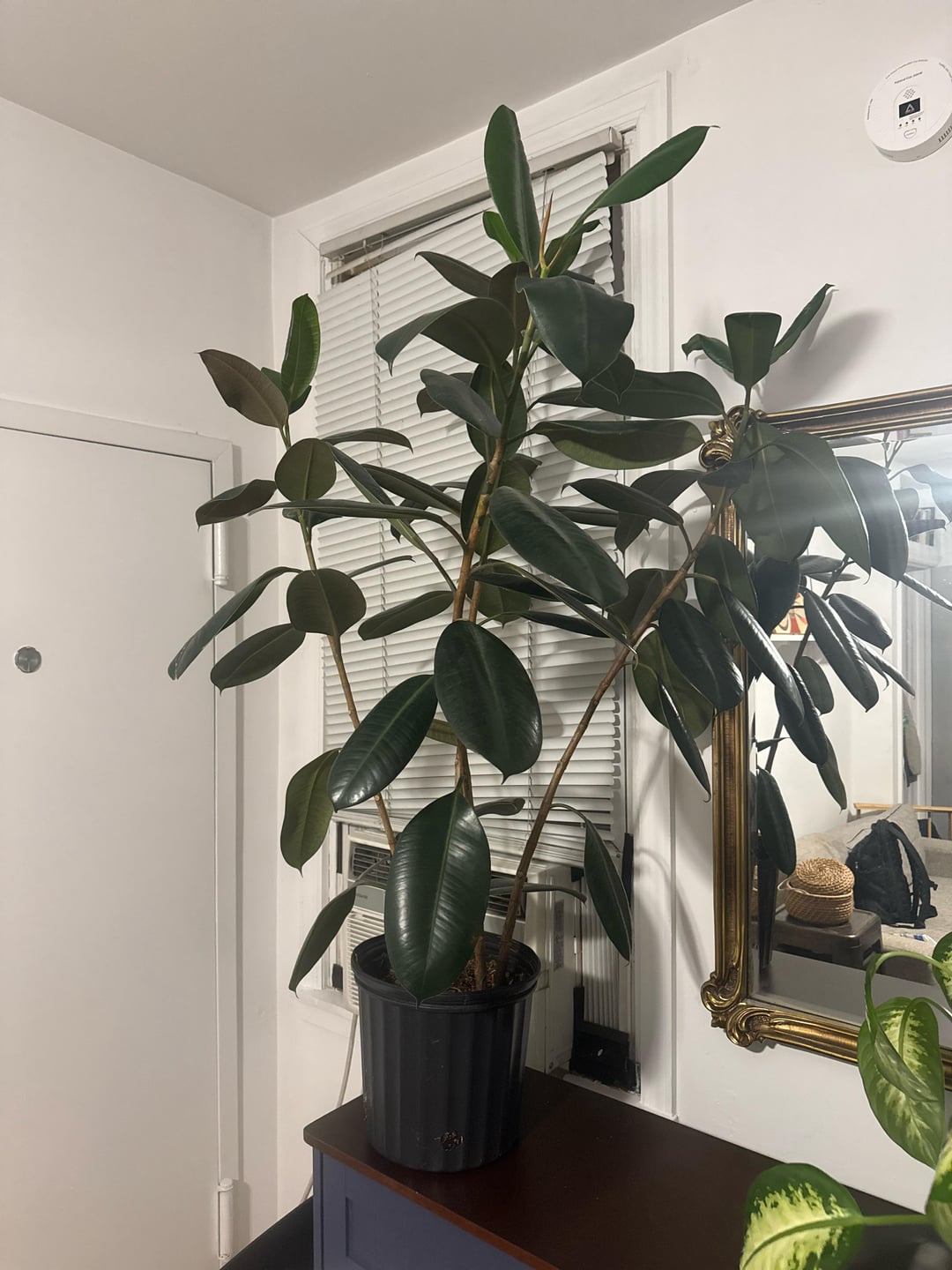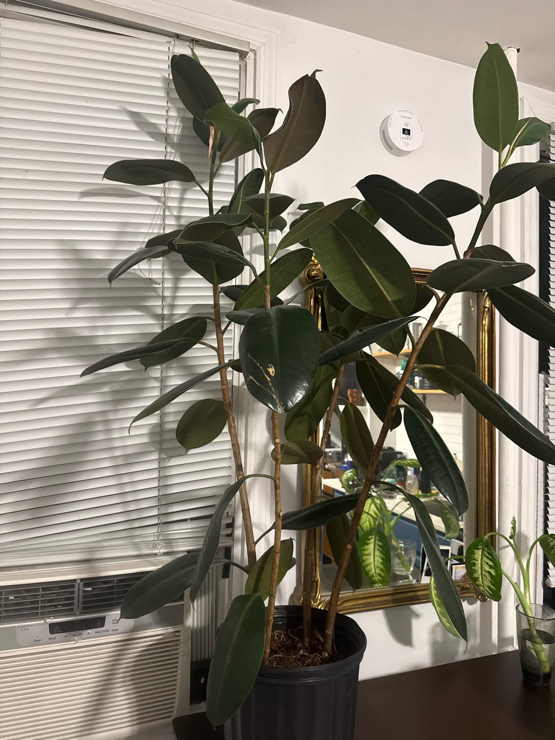 Ich möchte meine abgebildete Gummibaumpflanze vermehren, weil sie a) durch einen kürzlichen Wohnungsumzug etwas langbeinig geworden ist und b) zu groß für den Ort geworden ist, an dem ich sie umziehen musste