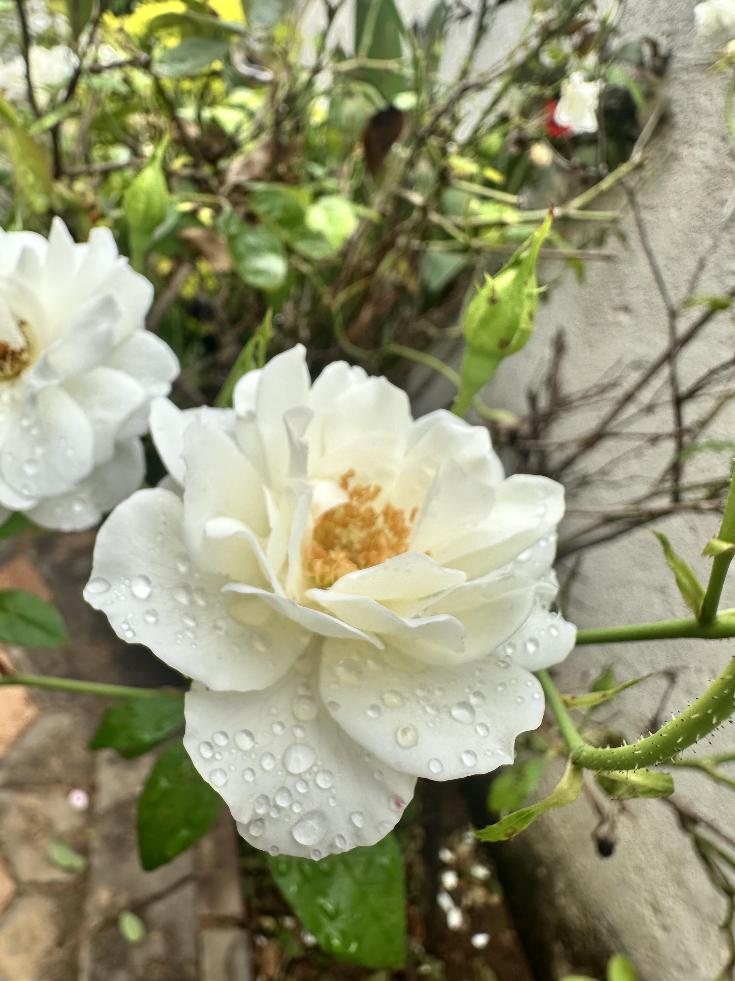 Regentropfen auf einer weißen Rose, wunderschön ☺️