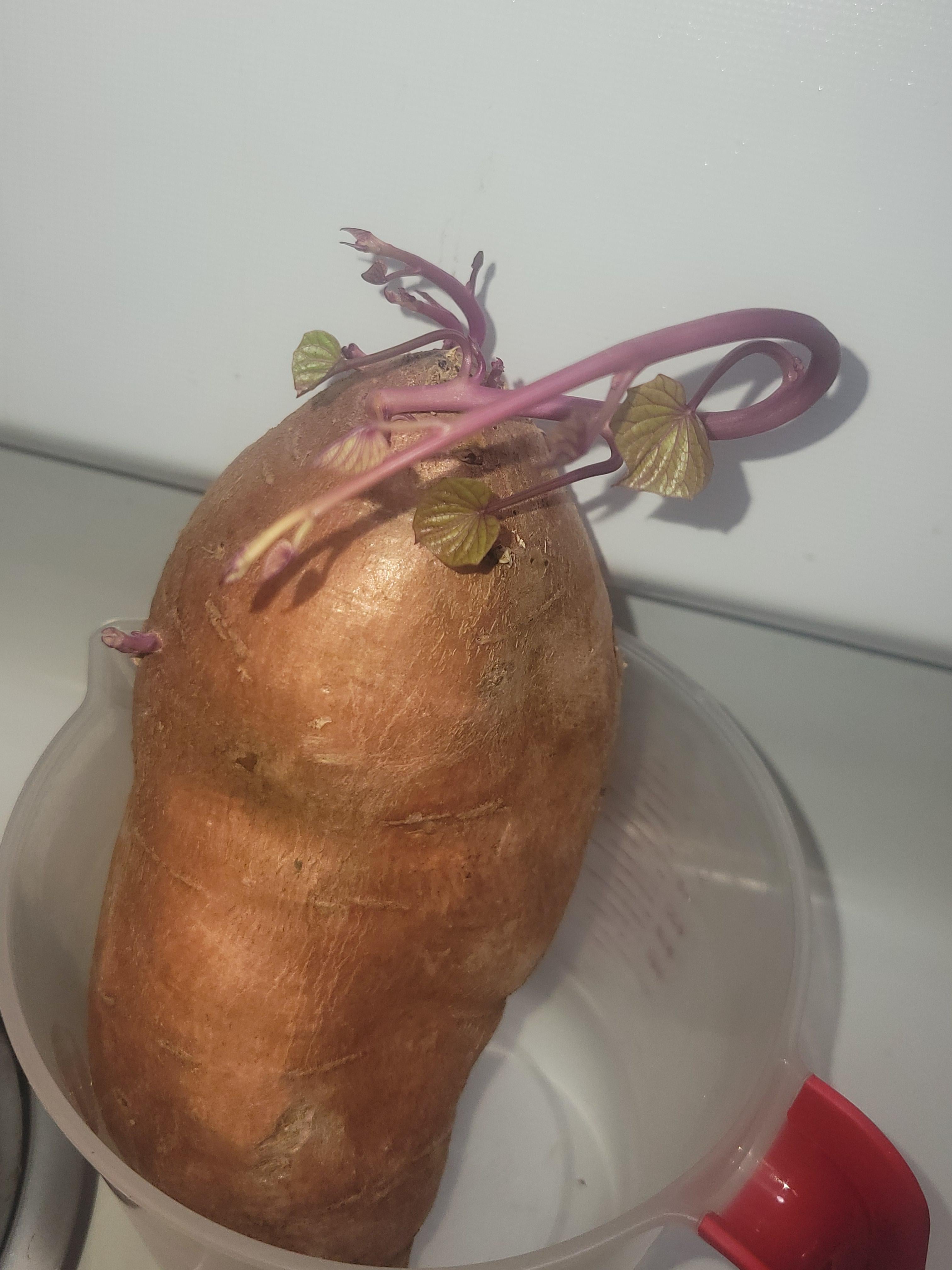 Ich habe vor einer Woche Süßkartoffeln mitgebracht und das ist, was passiert. Was muss ich tun, um das zu pflanzen? Wie pflanze ich wohl diesen Sämling?