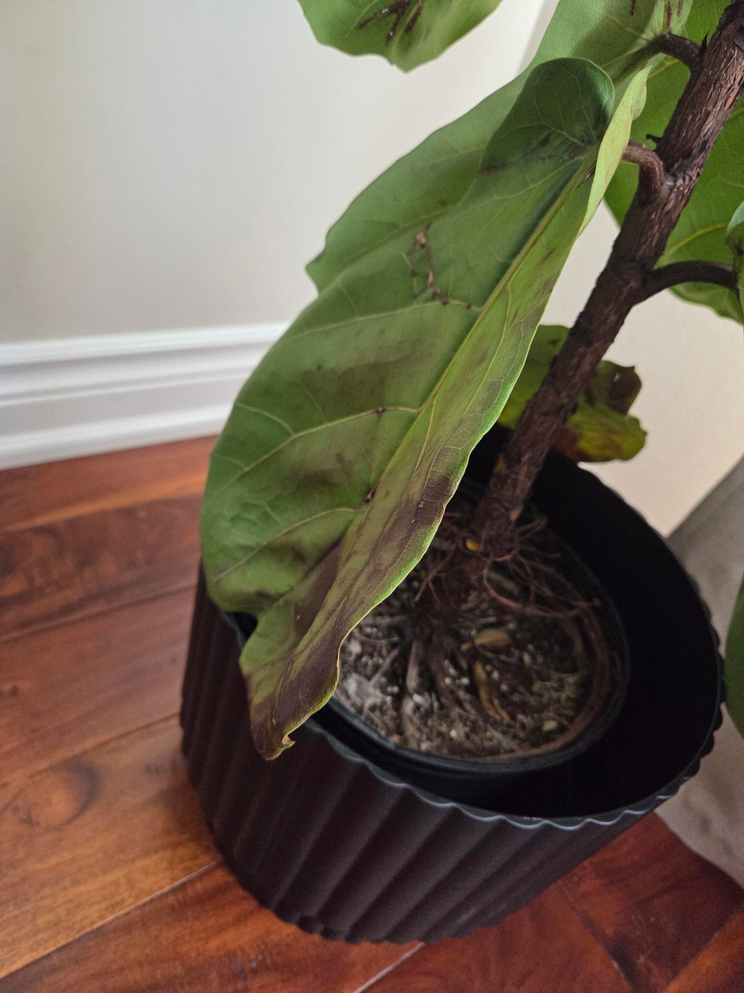 Wir haben die Feigenpflanze kürzlich aus einer Gärtnerei mit nach Hause genommen, glauben aber nicht, dass es ihr gut geht. es wirft die unteren Blätter zu schnell ab. fast 2 oder mehr pro Woche. Die unteren Blätter hängen ebenfalls herab, was meiner Meinung nach aufgrund der schweren Beschaffenheit der Blätter normal ist, aber die neuen Blätter oben, die langsamer sind, verfärben sich ebenfalls dunkel. Es kann sein, dass ich zu wenig gieße, weil ich schon einmal eine Pflanze durch Übergießen abgetötet habe, also habe ich einfach Angst. Kann jemand helfen, das Problem zu identifizieren? TIA