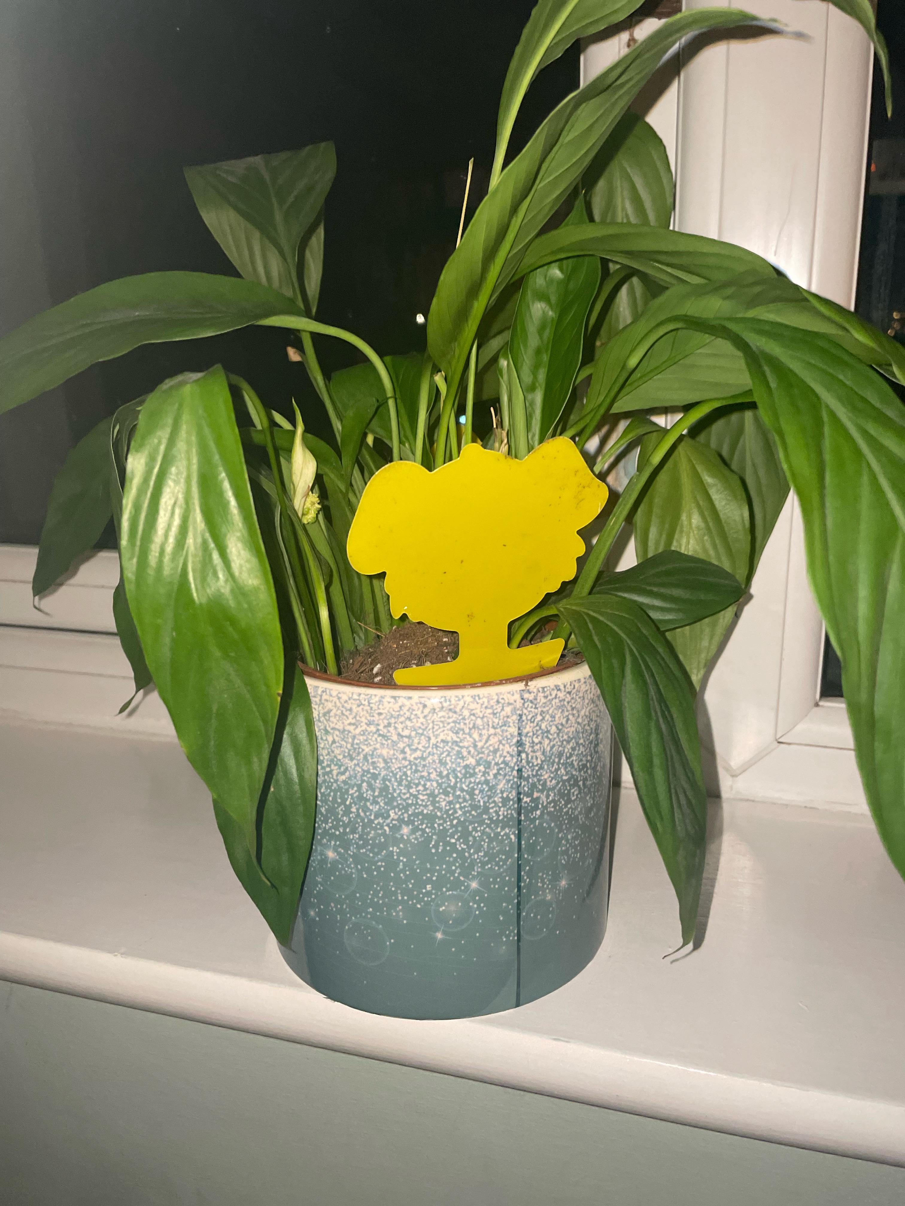 Ich habe meine Friedenslilie kürzlich wegen einer Trauermückeninfektion umgetopft (daher die Fliegenfallen) und gieße stattdessen von unten (damit die Erde nicht trocken ist, sondern nur so aussieht), aber jetzt hängt sie VIEL herab. Ich habe sie gegossen, aber sie wird immer noch nicht munter. Stimmt etwas nicht? Wie kann ich das beheben?