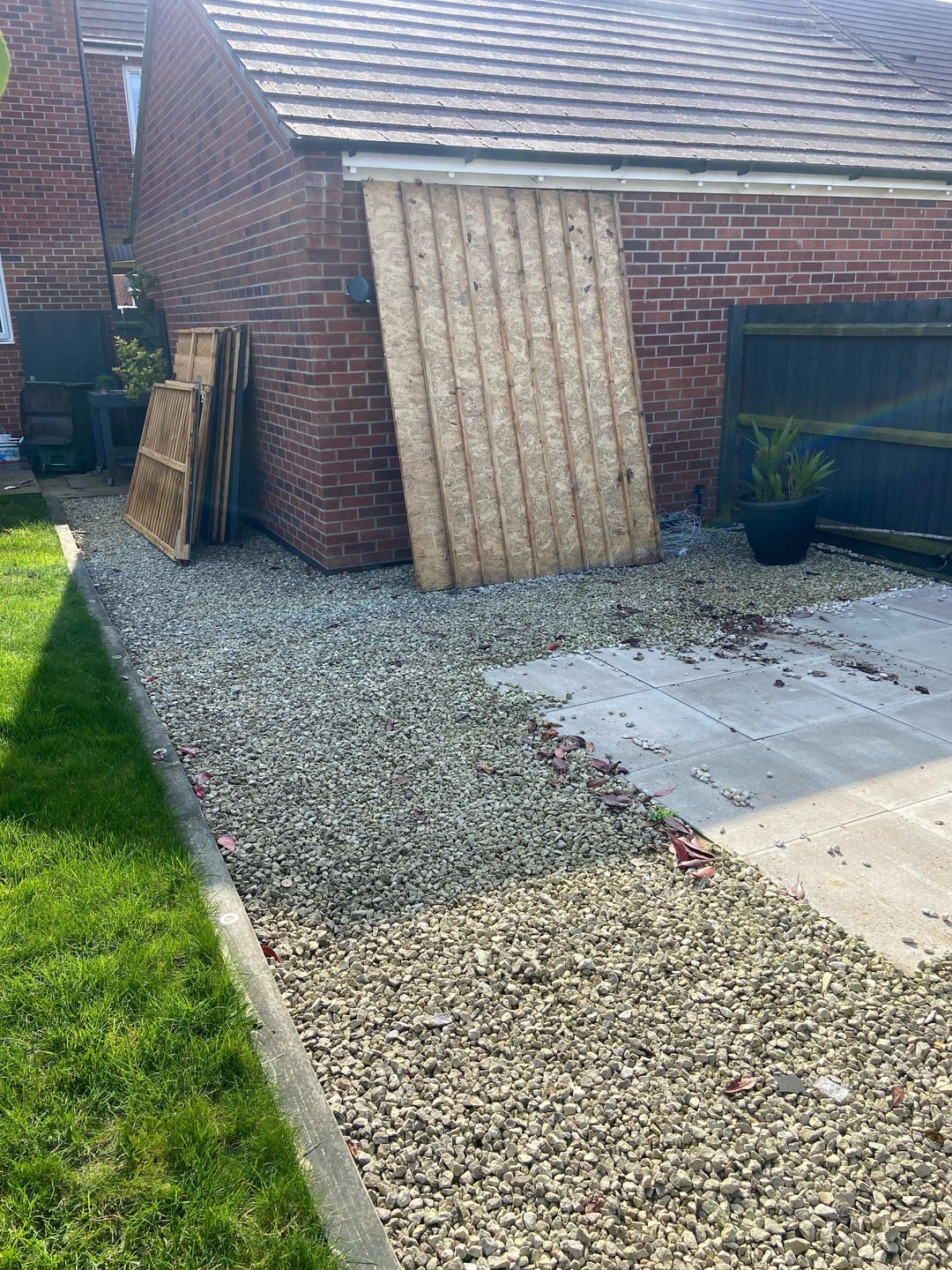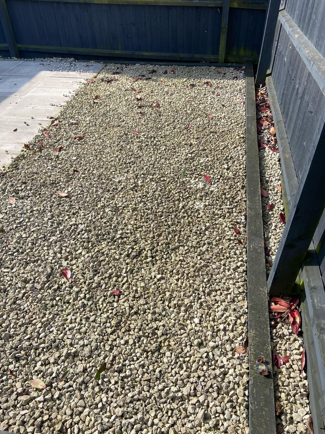 Es sieht so aus, als gäbe es in der Nähe des Zauns auf der rechten Seite bereits ein paar saubere Stellen, von denen ich weiß, dass der Birnbaum des Nachbarn im Sommer jede Menge Birnen fallen ließ