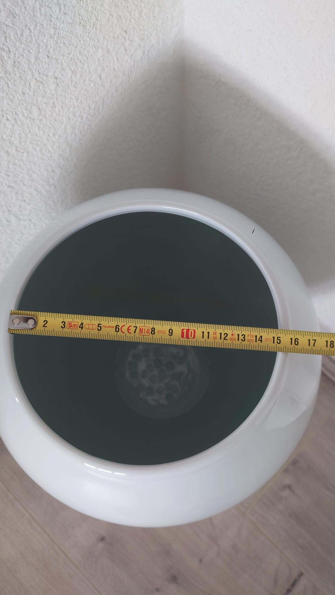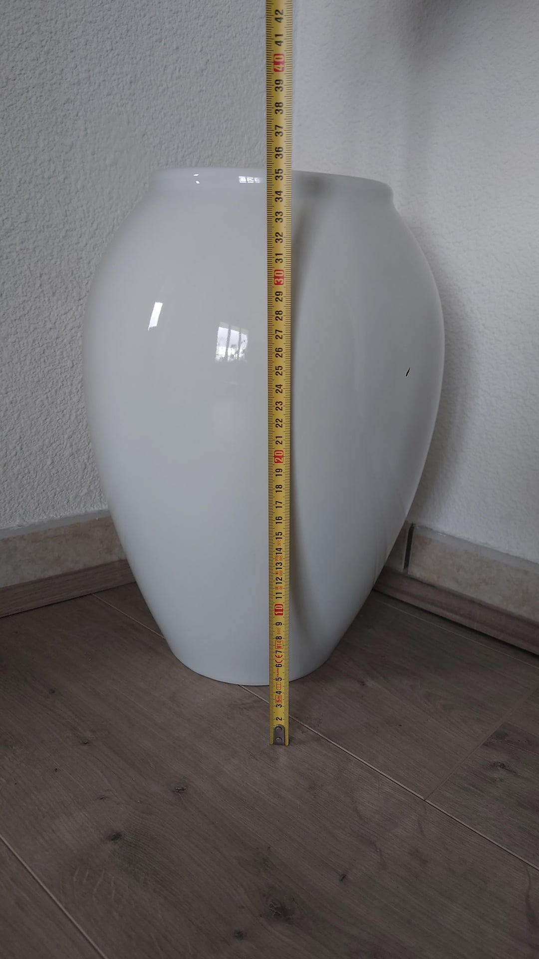 Hallo zusammen, ich habe eine sehr große weiße Porzellanvase. In der Vergangenheit habe ich dort künstliche Pflanzen aufgestellt, aber ich würde etwas Lebendiges bevorzugen. Die Maße finden Sie auf den folgenden Fotos. Ich bevorzuge es, die Pflanze nicht direkt in die Vase zu pflanzen oder sie anzustechen.