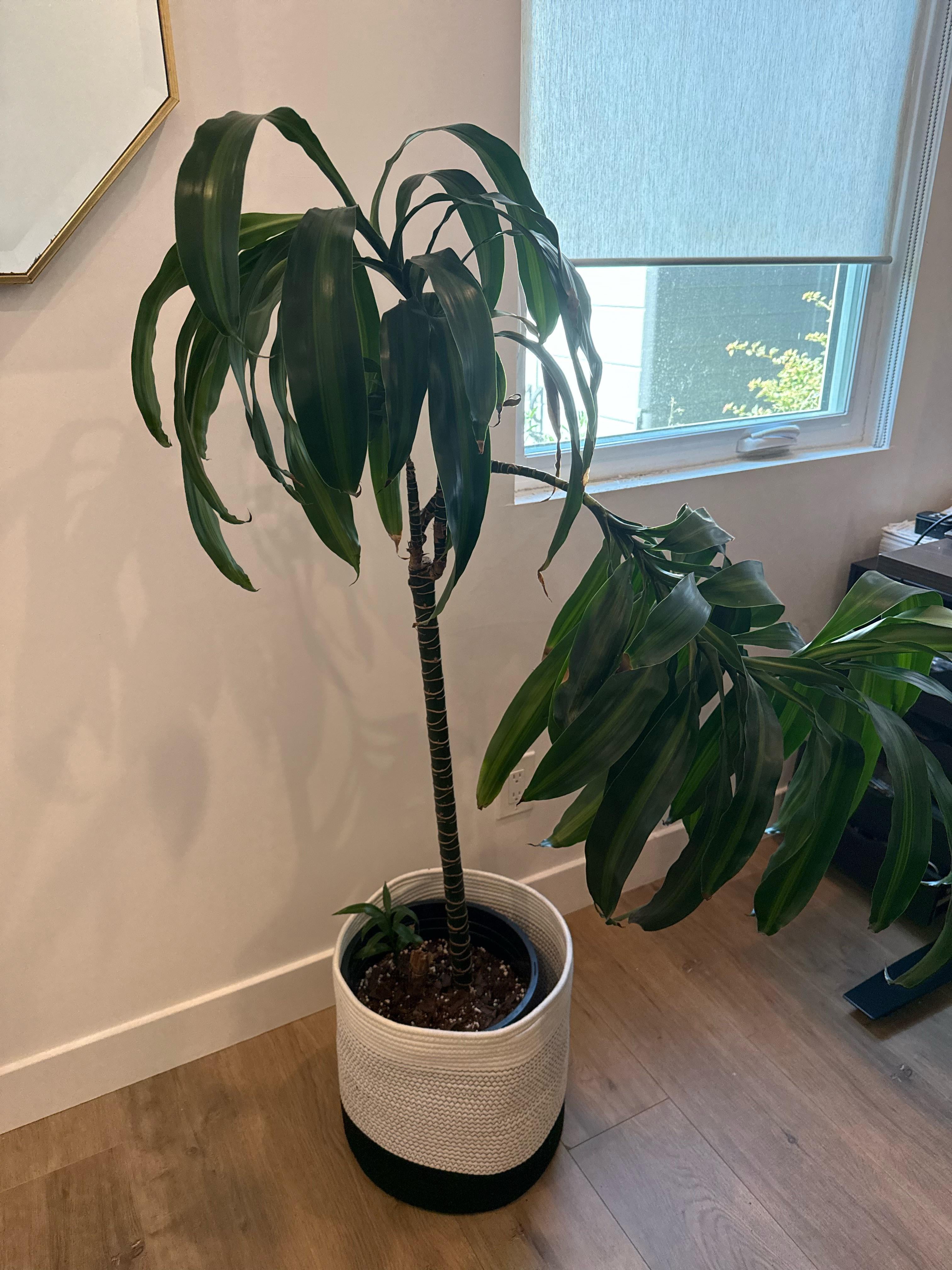 Ich hänge sehr an meiner Maispflanze, seit ich sie vor drei Jahren vor Wollläuse gerettet habe! Viele neue Triebe und Blätter, aber der Stängel ist so dünn, dass er kopflastig wird und umkippt. Hat jemand irgendwelche Heilmittel oder beste Möglichkeiten zum Hacken und Stützen? Externe Unterstützung wäre schwierig, da es ziemlich groß ist.