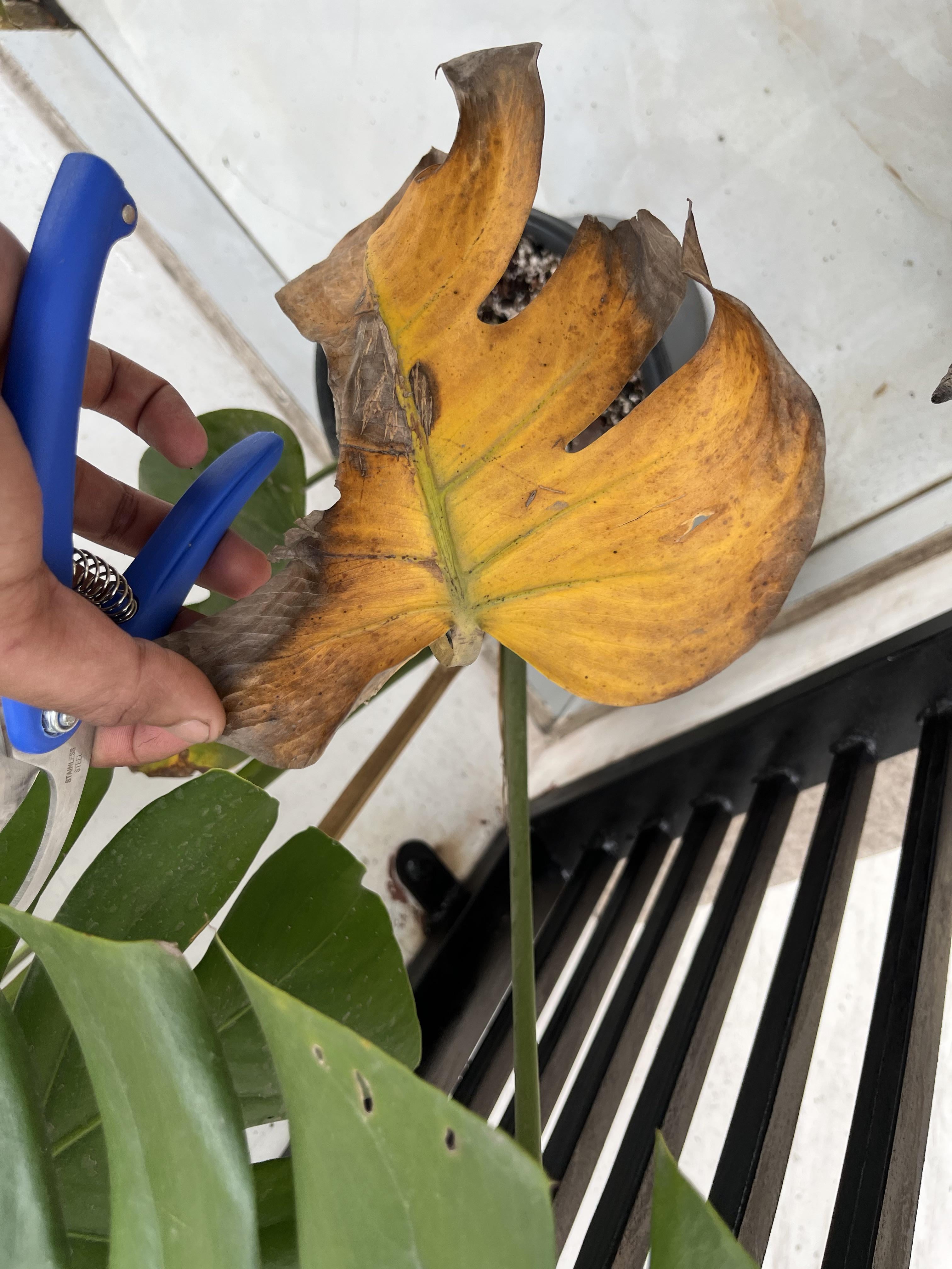 Warum sollte ich dieses gelbe Monstera-Blatt abschneiden?