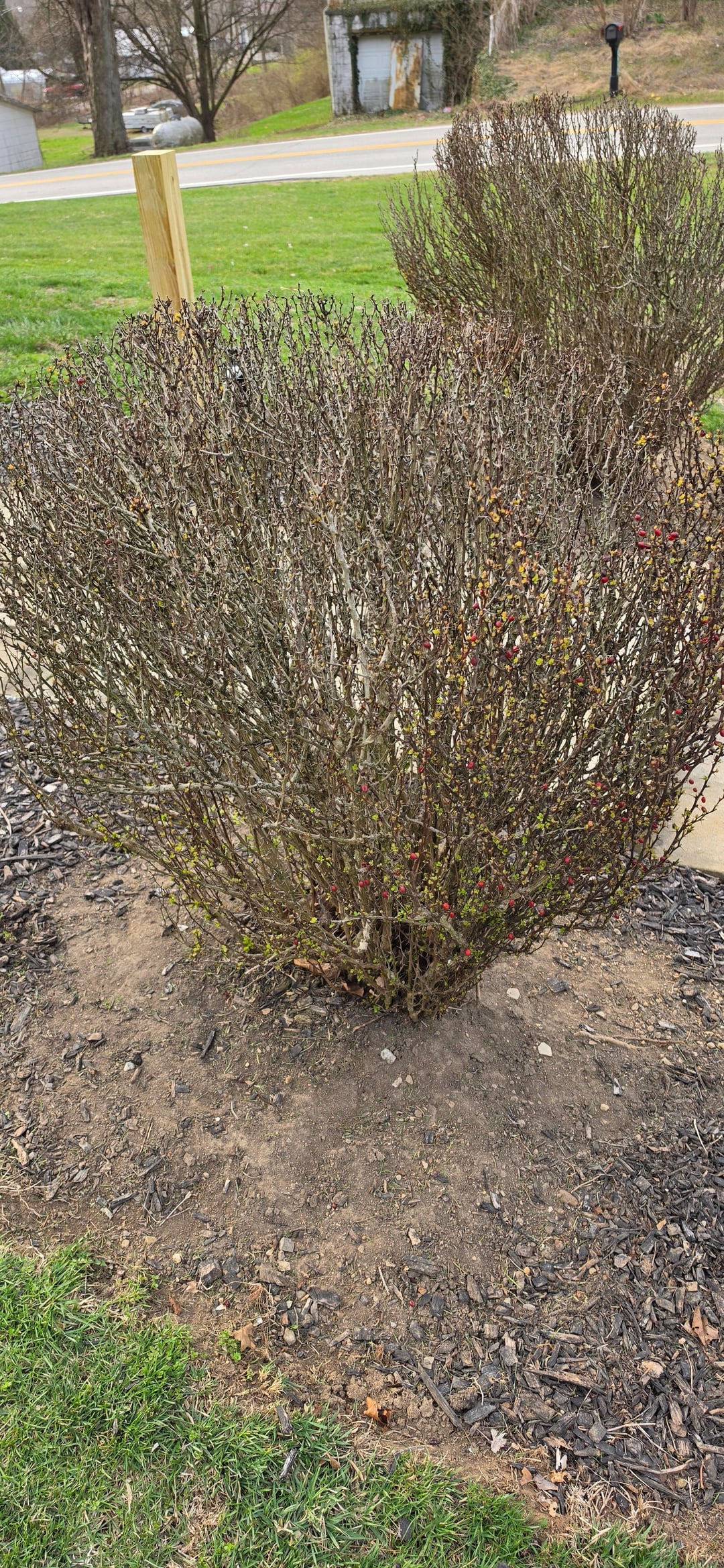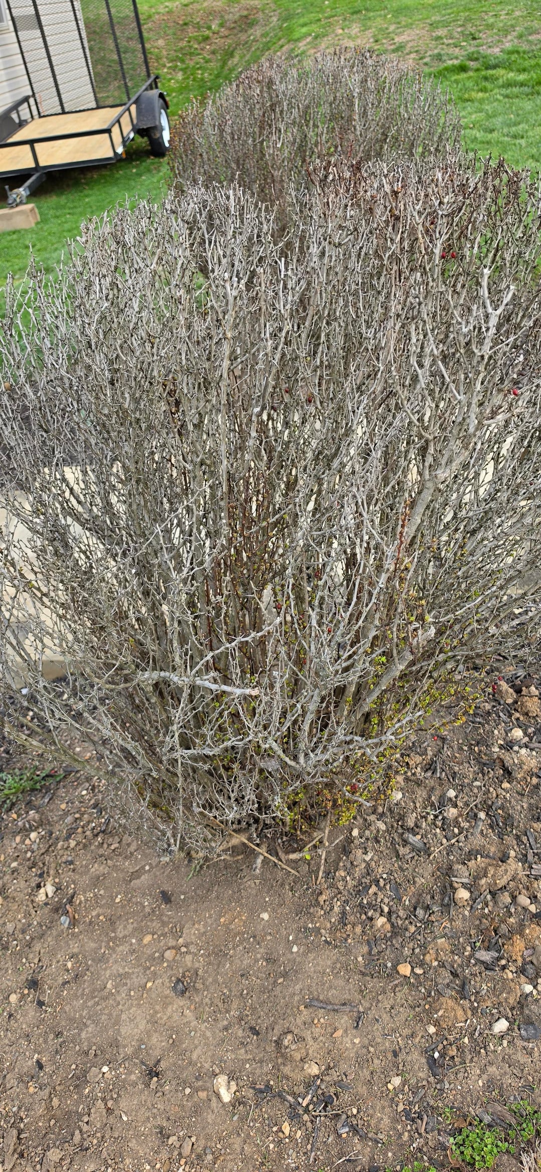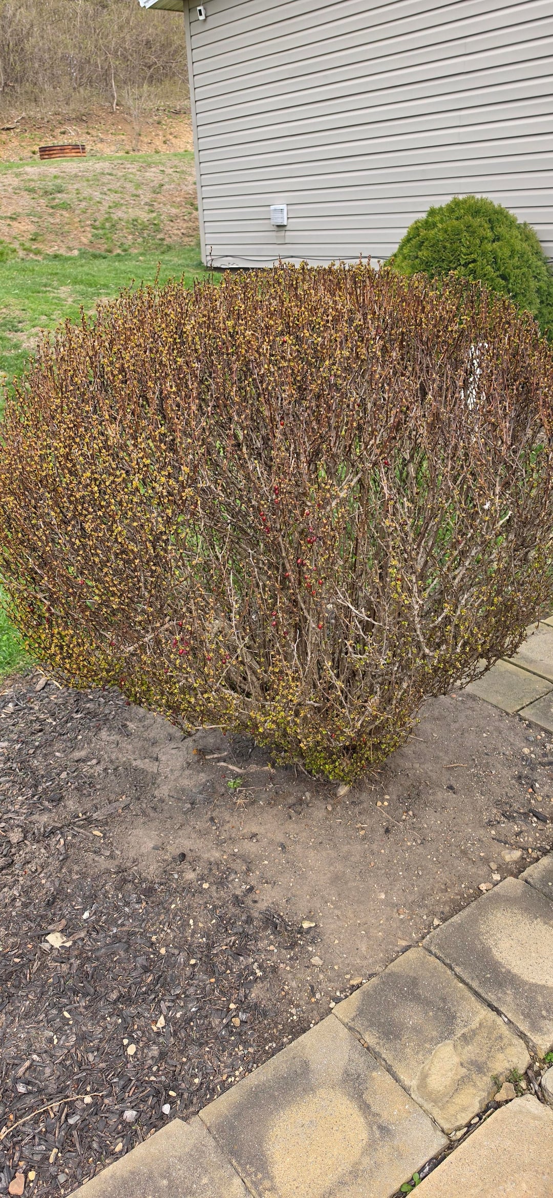 Leider bin ich mir nicht sicher, was das ist, aber ich habe mein Haus vor fünf Jahren gekauft und sie haben sich gut geschlagen, ohne dass sie bis zum Herbst letzten Jahres interagiert haben. Viele der Stängel sind grau und brüchig, aber einige gesunde Triebe wachsen unregelmäßig im Busch.