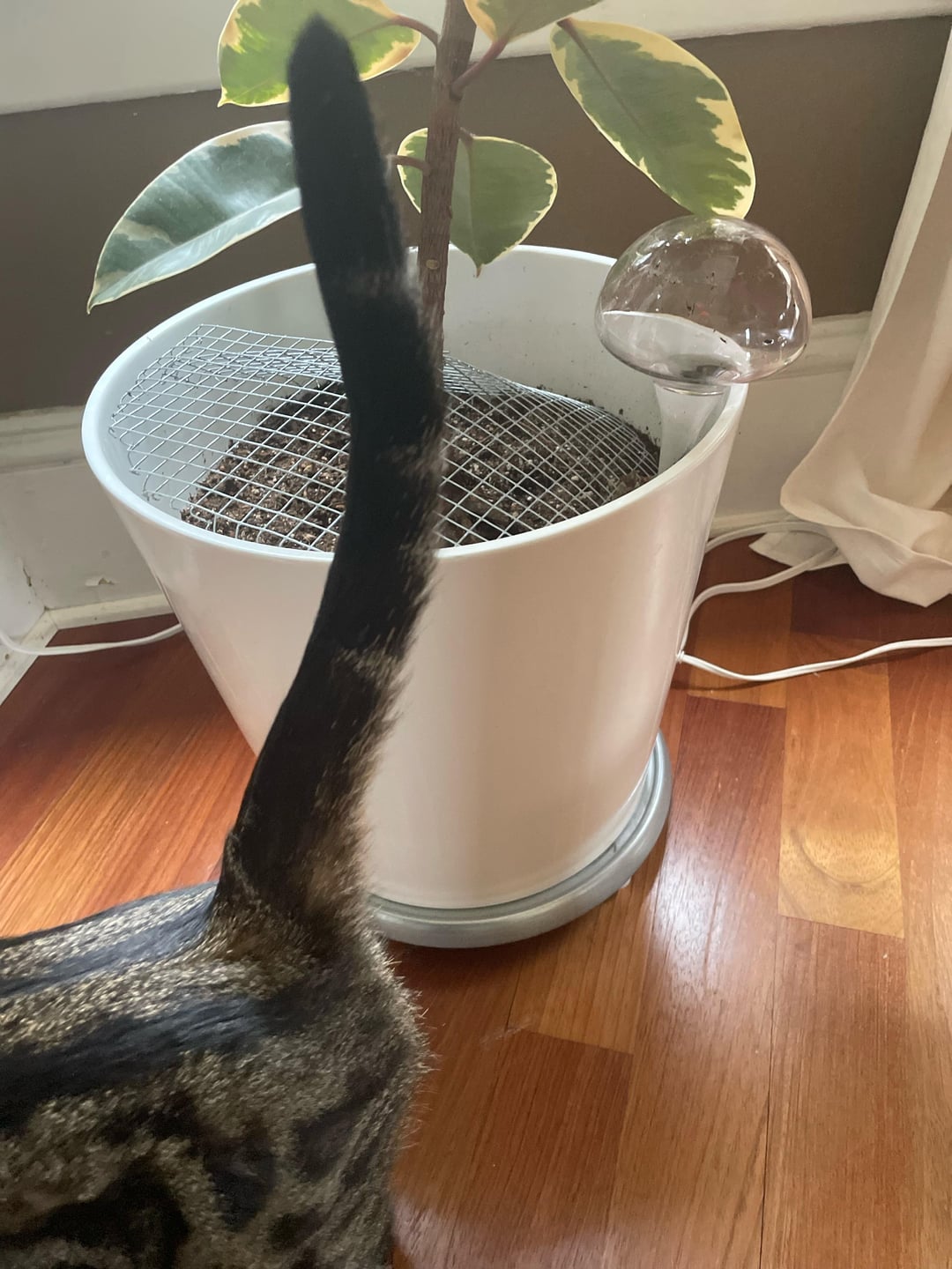 Ignorieren Sie Mabels Schwanz auf dem Foto 😅. Ich bin mir über die Physik dieser Dinge nicht wirklich sicher. Es sieht so aus, als ob das Wasser vielleicht in die Pflanze gelangen kann, vielleicht ist es aber auch so, als würde die Schwerkraft das Wasser hineindrücken, je nachdem, wie stark der Boden in dem Rohr verdichtet ist, durch das das Wasser gehen muss, wenn man es in die Erde drückt. Ich kann nicht sagen, ob meine Pflanzen tatsächlich davon profitieren oder ob ich sie einfach regelmäßig gießen sollte. Es kommt mir so vor, als würden sie sogar bei derselben Pflanze mit unterschiedlicher Geschwindigkeit abfließen, daher denke ich, dass es so sein könnte, als würde man manchmal so viel Wasser hineingießen oder zu anderen Zeiten gar kein Wasser hineingießen.