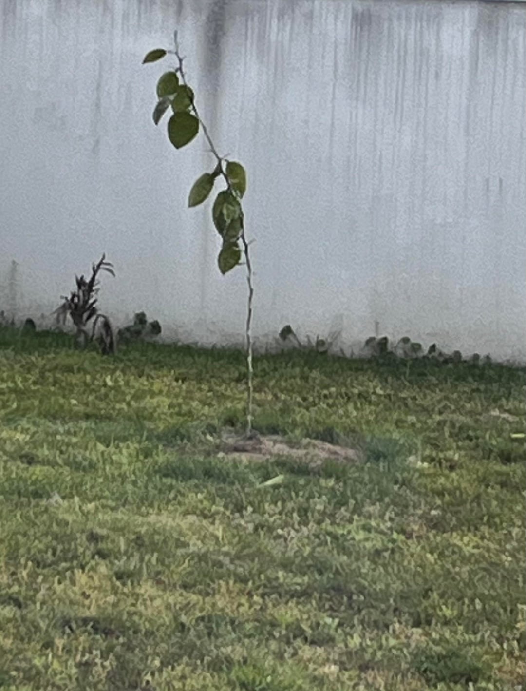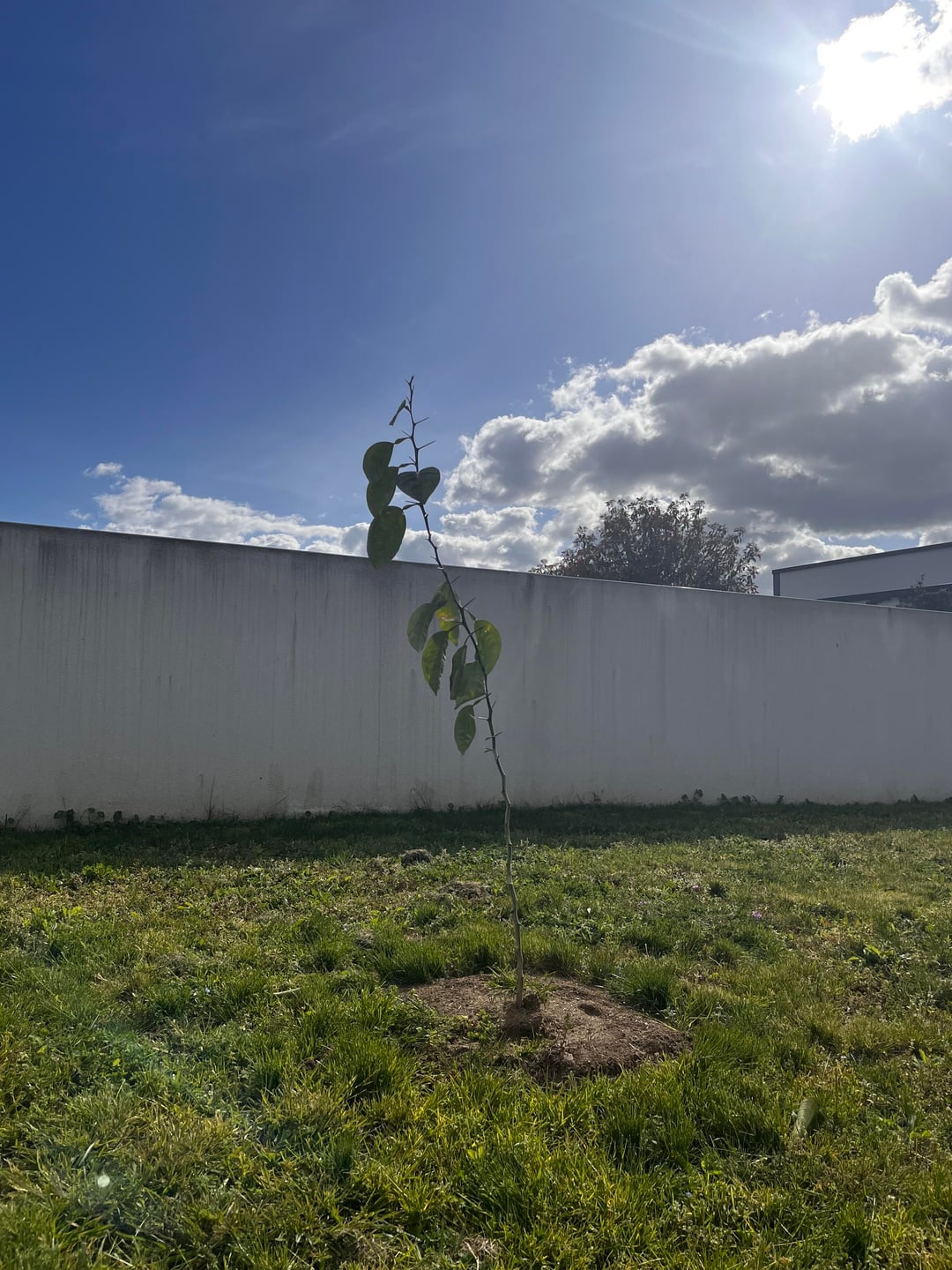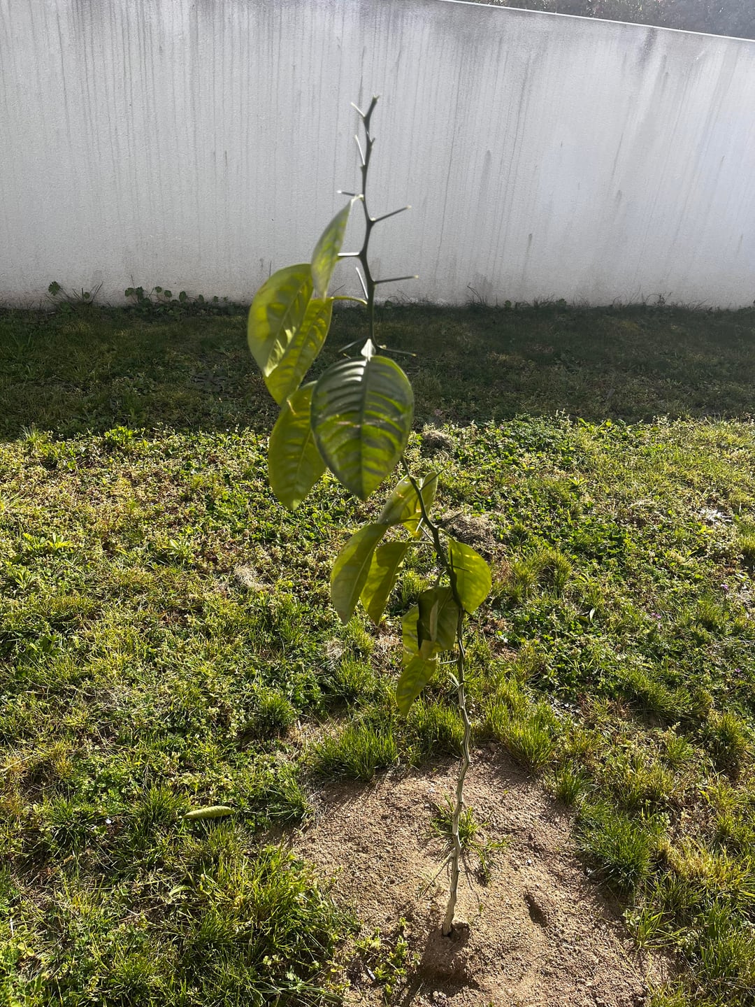 Tu peux le tuteurer pour qu’il pousse droit, il finira par s’étoffer. Par contre le sol autour me semble très sec et compact, as-tu fait un apport de terreau au moment de la plantation ? On préconise un terreau spécial agrumes, avec une part de sable pour que ça reste drainant.