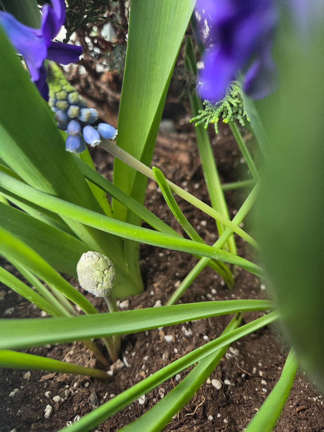 Hoffentlich werden die Bilder dem gerecht. Ich kaufte eine Packung gemischter Muscari-Zwiebeln und pflanzte sie gemäß den Anweisungen im November (in 8b in Kanada). Einige blühen bereits, aber einige haben es bereits geschafft. Sie schießen diese seltsamen, flockigen weißen Kugeln in die Höhe, anstatt wie üblich zu blühen. Sie scheinen nicht mehr als ein oder zwei Zoll zu wachsen und haben sich noch nicht über das Stadium der flauschigen weißen Kugeln hinaus entwickelt. Was ist das? Handelt es sich nur um eine schlechte Charge oder sollte ich mir Sorgen machen? Ich habe noch nie Blumenzwiebeln angebaut, aber die meisten Muscari sind normal, ebenso wie meine Hyazinthen (die bereits vollständig blühen) und meine Narzissen (die jetzt zu blühen beginnen). Ich würde mich über jeden Einblick oder Rat freuen. Danke!