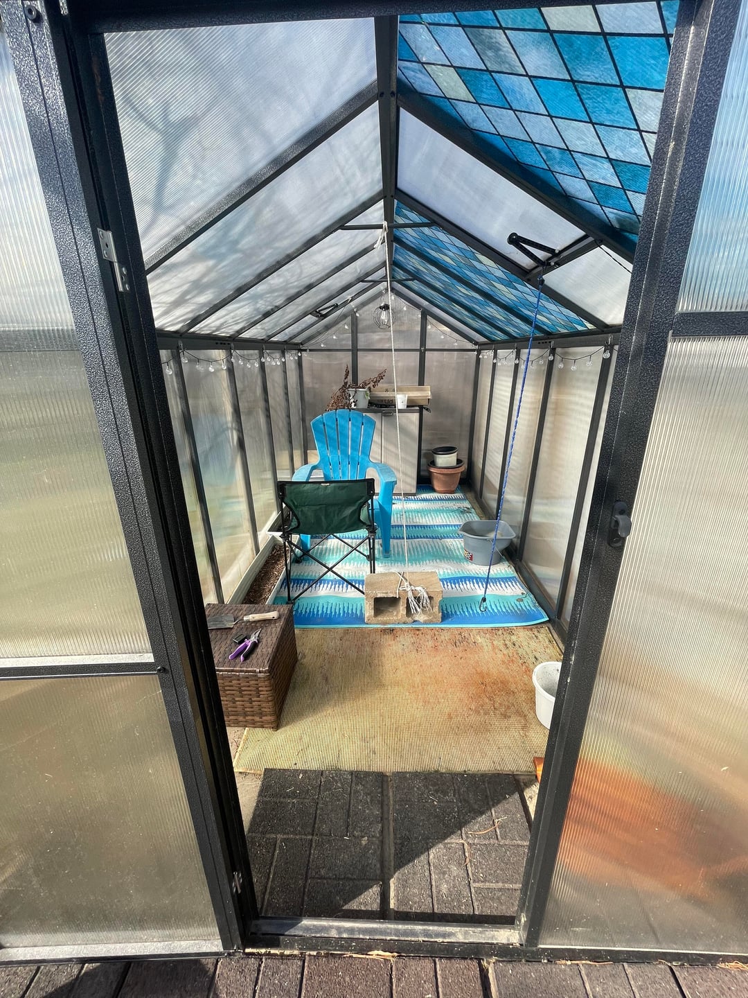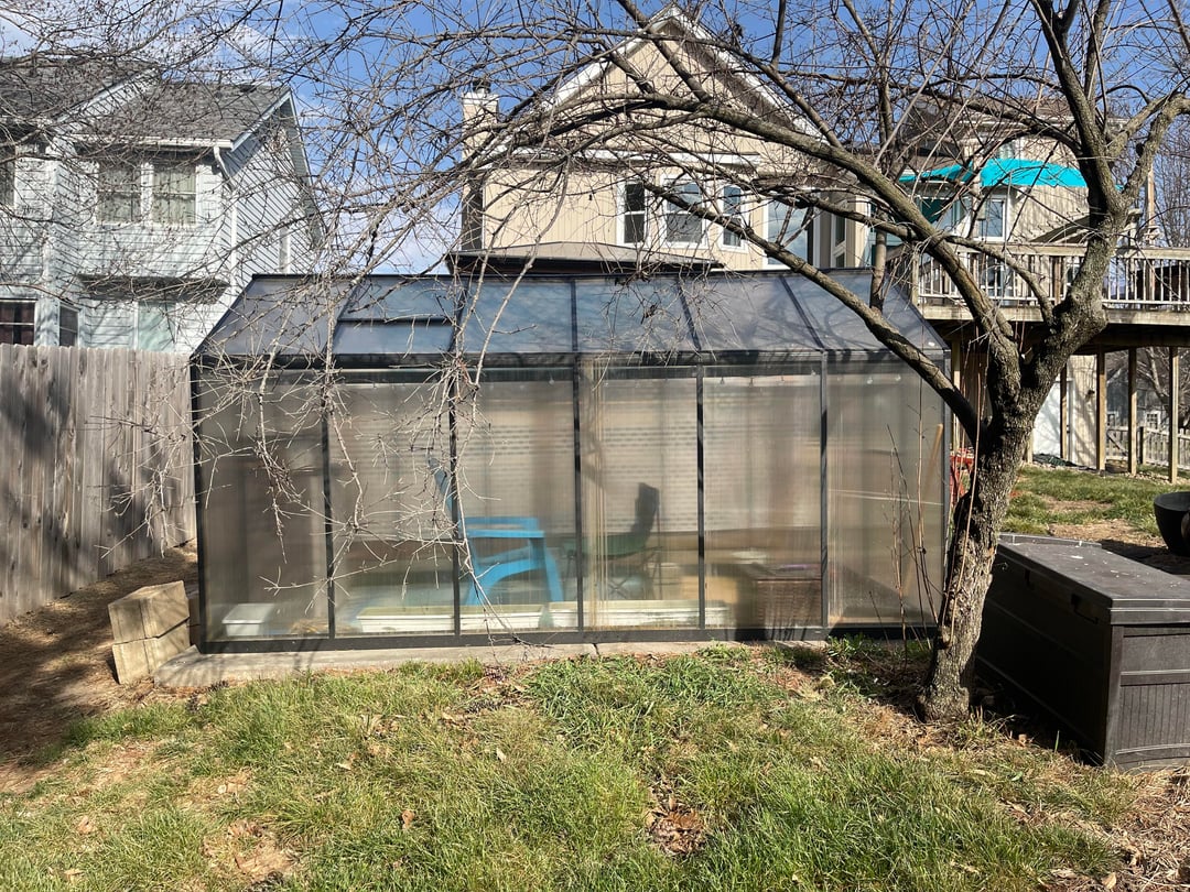 Bitte helfen Sie! Mein Gewächshaus hat bereits über 100 Grad und erreicht im Sommer bis zu 130 Grad. Es ist gefährlich dort drin zu sein und meine Pflanzen werden verkocht. Ich habe einen Garten mit Gitter auf der Ostseite und UV-Tönung auf einem Teil des Daches angelegt. Ich denke darüber nach, auf der Westseite immergrüne Pflanzen zu planen und/oder das Ganze mit einem Sonnensegel zu überziehen. Vorschläge? Es besteht aus Metall und gewelltem Kunststoff und verfügt über zwei Lüftungsschlitze an der Oberseite. 4x12ft