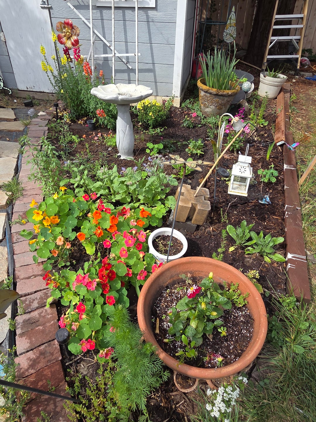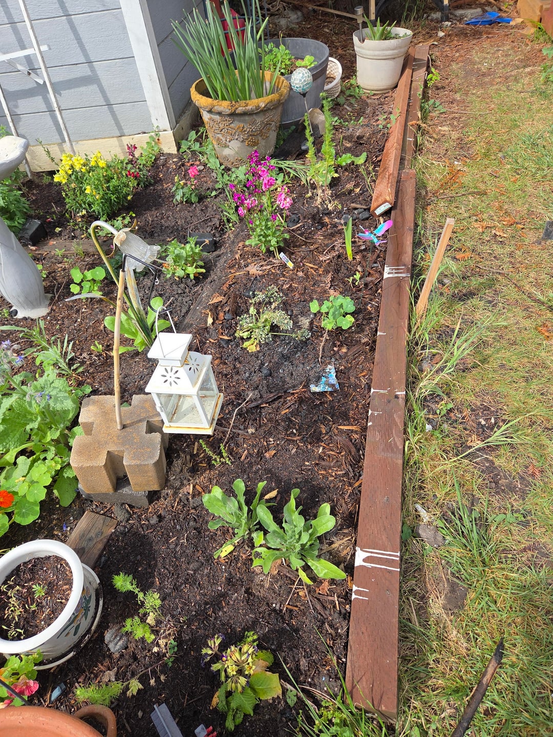 Zum ersten Mal im Garten arbeiten! Ich habe letzten Herbst damit begonnen und bin erstaunt über die Fortschritte. Ich muss sagen, dass ich im Laufe der Zeit natürlich Dinge hinzugefügt habe, aber ich liebe meinen Garten. Ich versuche, es noch mehr zu füllen, also wären alle Ideen großartig!! Ich habe auch einen Chaos-Schmetterlingsgarten angelegt. Es handelt sich hauptsächlich um Wolfsmilch, Schmetterlingskraut, Kosmos und eine Reihe von Schmetterlingsblütenmischungen. Mein Ziel mit meinem Garten ist es, Bestäuber anzulocken: Bienen, Kolibris und Schmetterlinge. VOR ALLEM Schmetterlinge.
