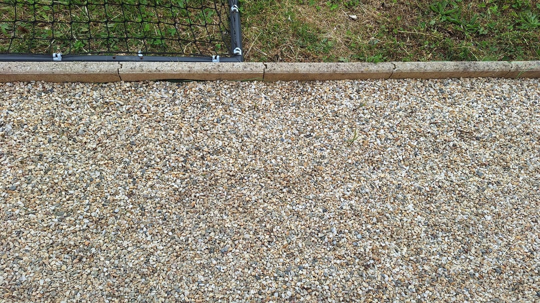 Zusätzlich wurde ein 6-10-Kies ausgelegt. Er sagte mir, dass, wenn er kleiner wäre, das Unkraut dort wahrscheinlich wachsen würde.